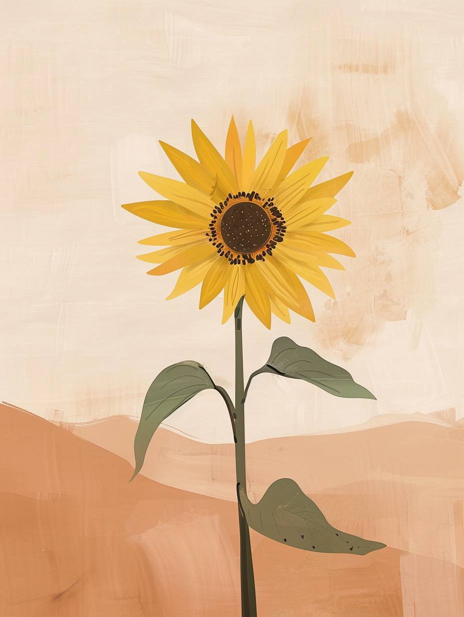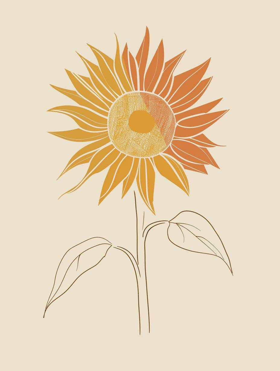illustration of a silhuette minimalist sunflower, drawing style, abstract, solid pastel color background, minimalistic illustration --ar 3:4 --stylize 140 --v 6.0