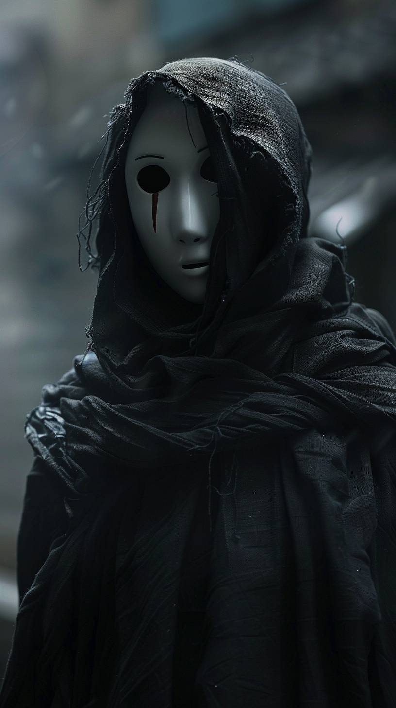 Create a compelling depiction of No-Face in a live-action adaptation --ar 9:16 --v 6.0