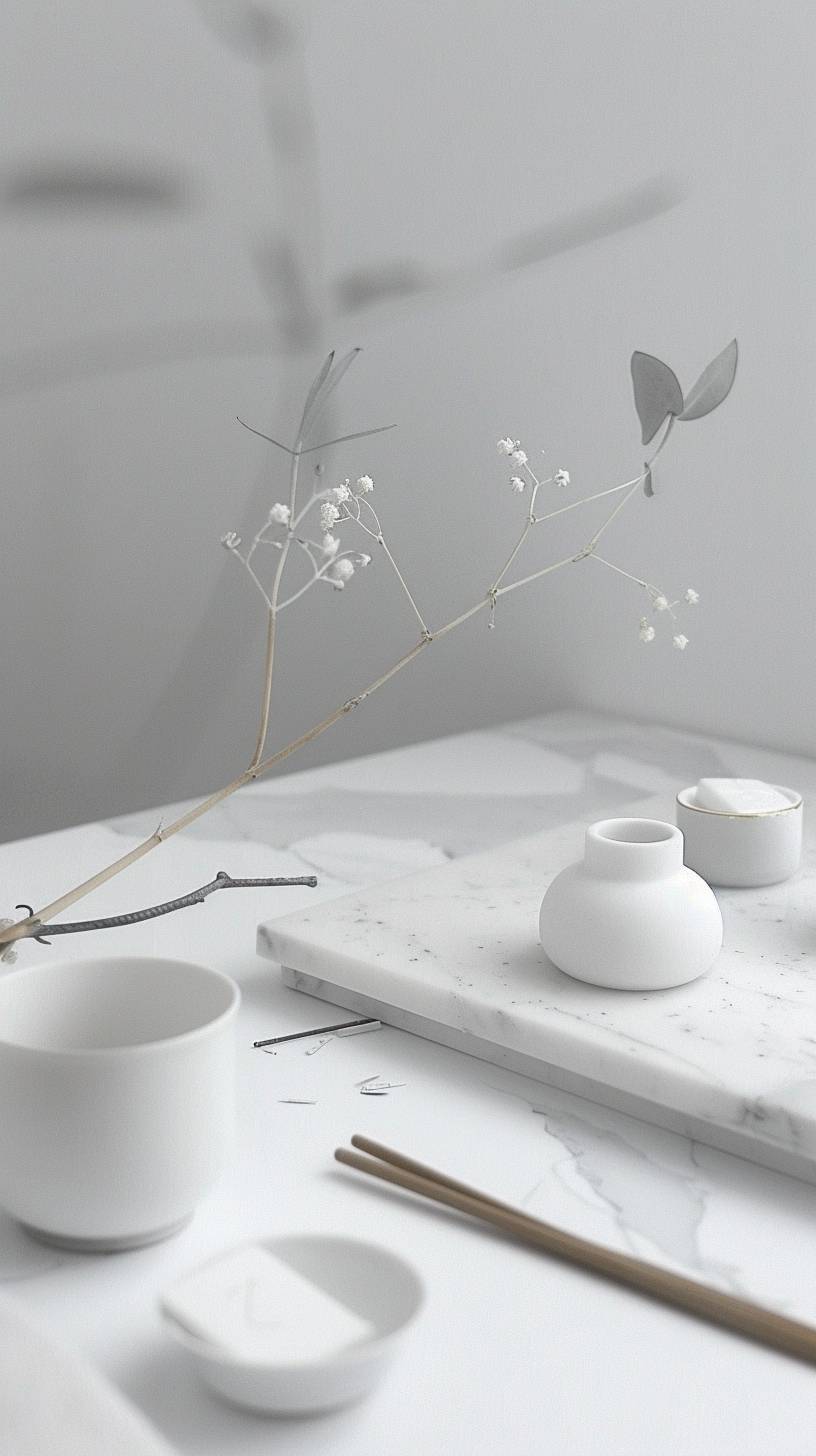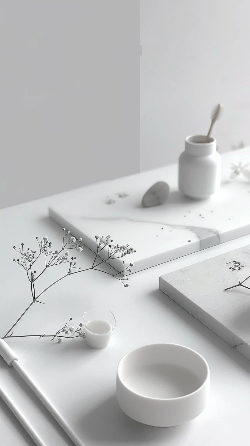 a simple moodboard of interior design materials for a bathroom, photo of a materials layout, no objects only material samples put together, gold Carrara marble, white ceramic tiles, gold details, light wood, natural colours, minimal Scandinavian design style, --ar 9:16 --sref 3421909812 --v 6.0