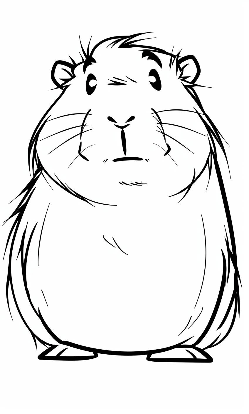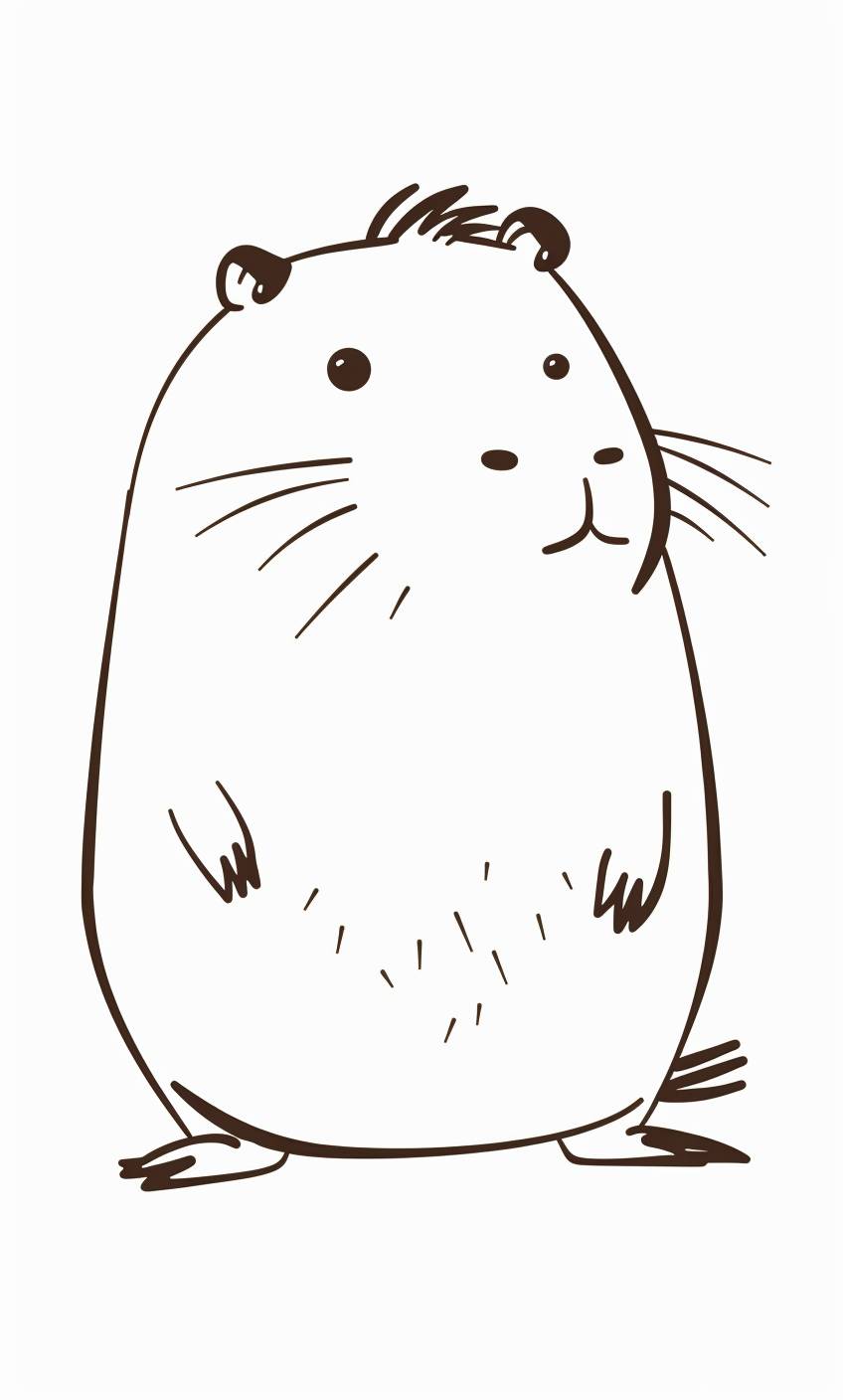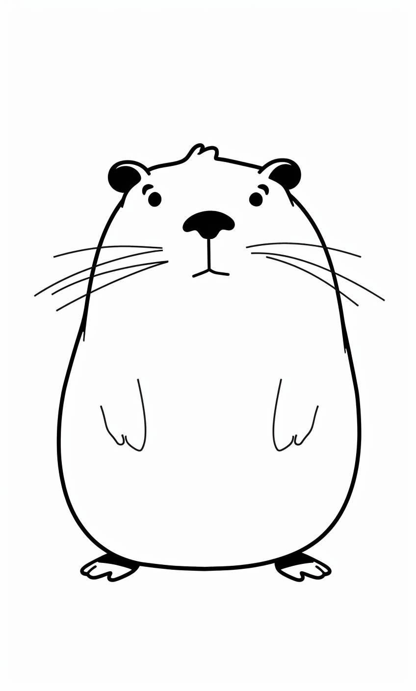 A simple outline drawing of the cutest capybara character, white background, vector art style, simple line drawings, high resolution vector graphics, cute cartoon designs, simple lines and shapes, minimalist design, a solid black shape on top with a circle as its head in the style of minimalist design. --ar 59:98 --style raw --v 6.0