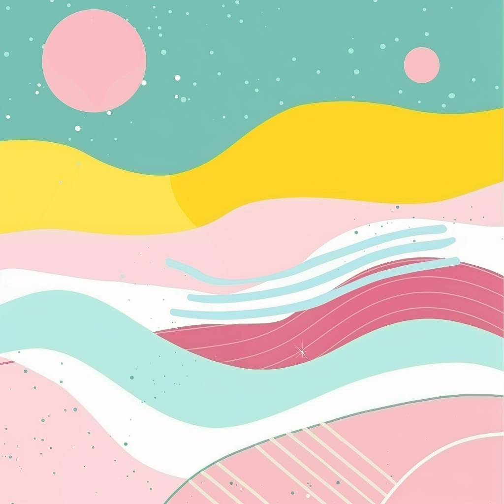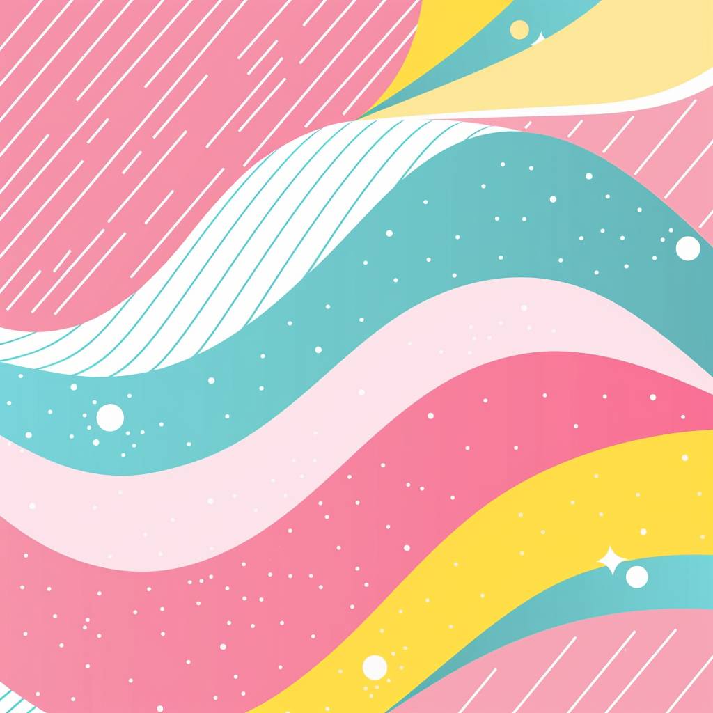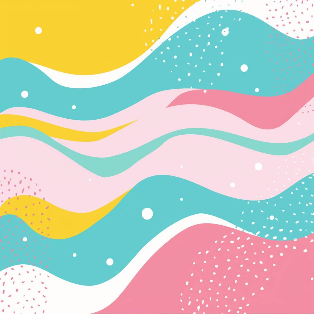 Fundo gráfico abstrato plano dos anos 80 com ondas, rosa, azul claro, branco e amarelo