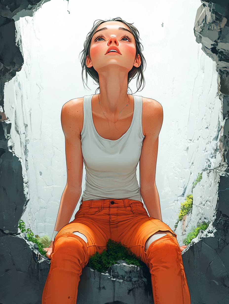 mulher, canal radicular de um vagante, foto de corpo inteiro, profundidade de campo média, no estilo de Junji Ito