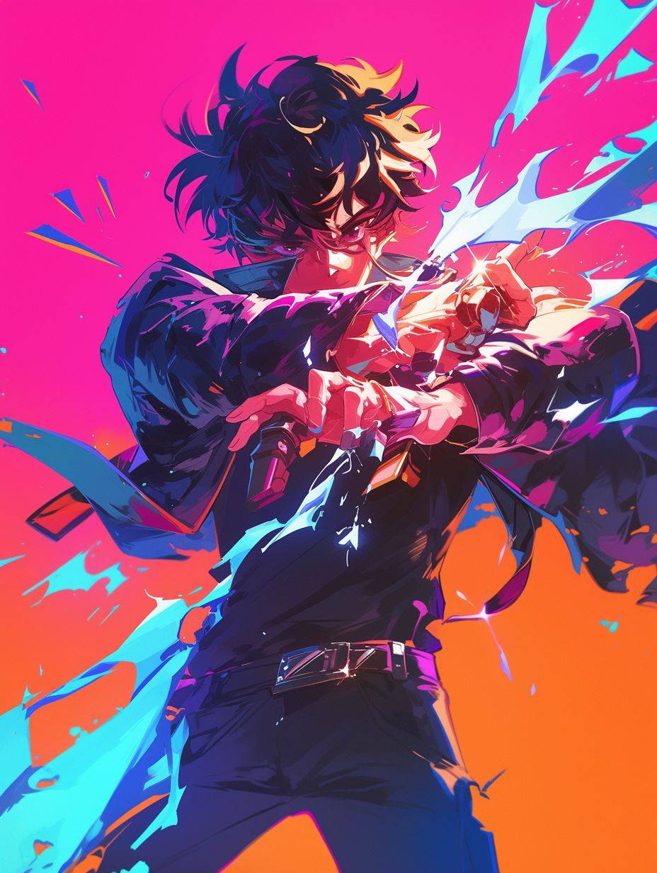 [Your character], in his iconic stance, surrounded by a calm yet powerful aura, in classic anime style, digital art style with vibrant colors, high definition details, powerful stance --ar 3:4 --niji 6