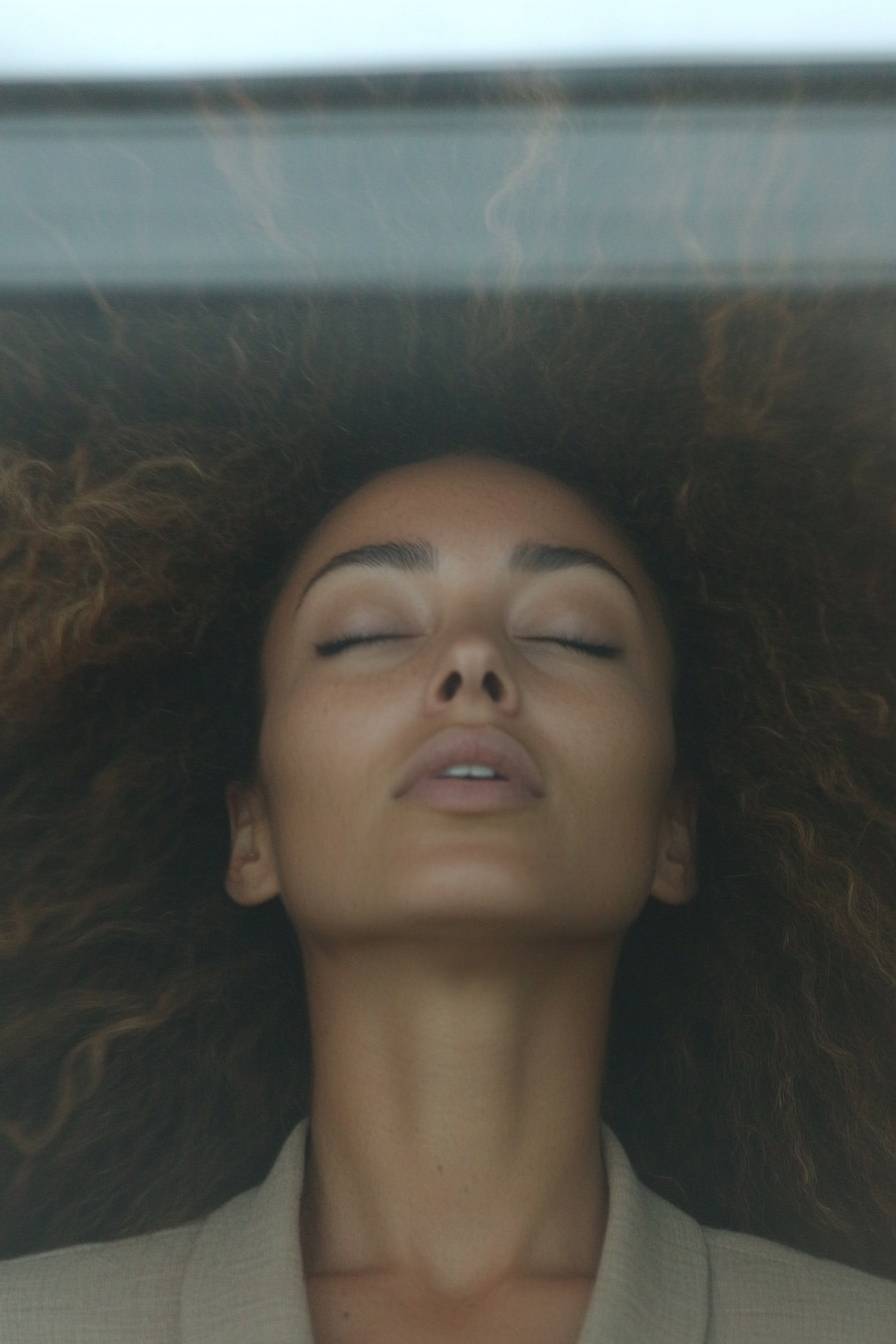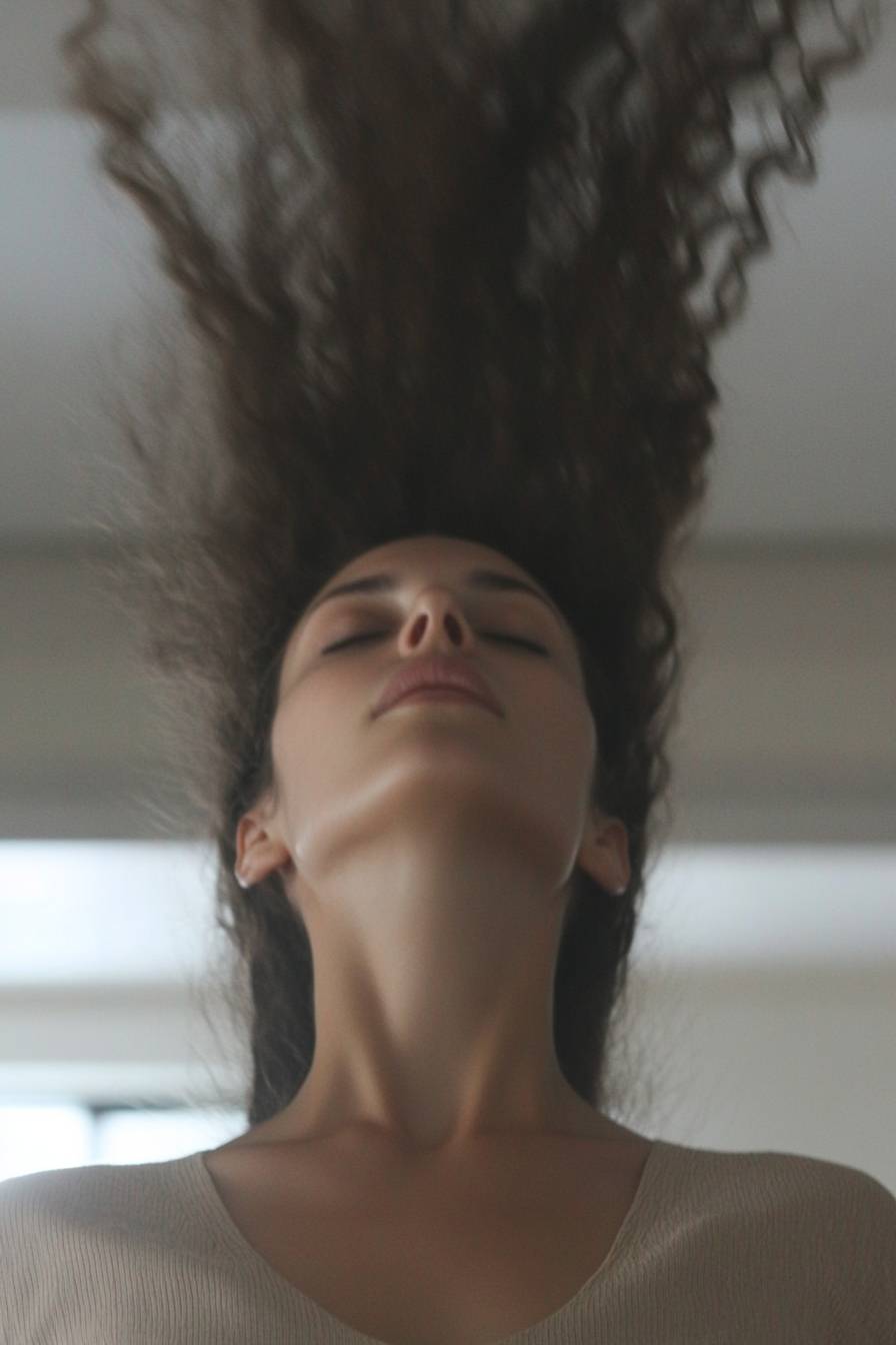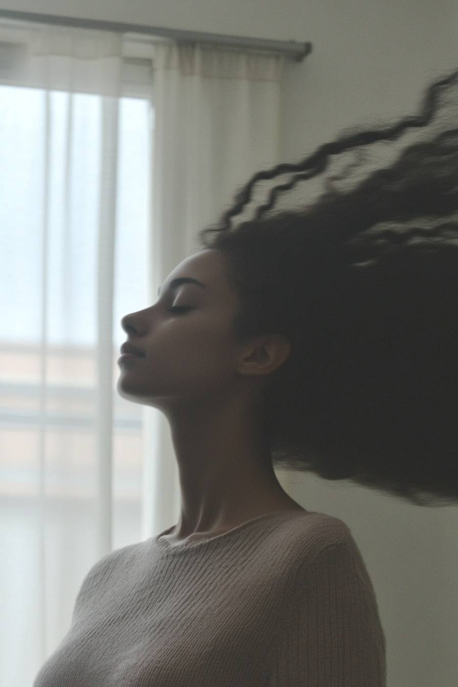 Uma mulher com cabelo cacheado está deixando fluir livremente.