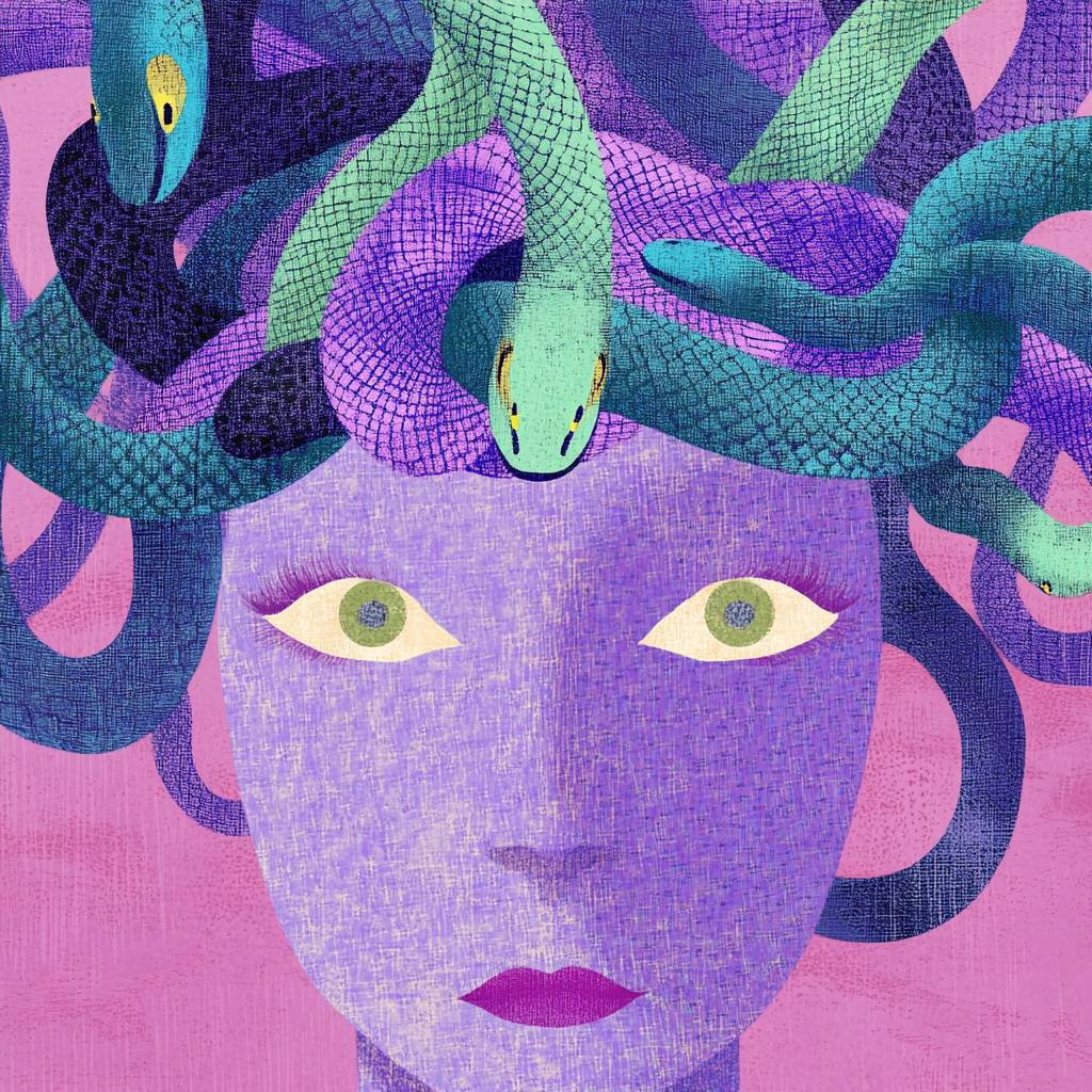 Medusa Gorgon é uma bela mulher com cobras ao redor da cabeça.
