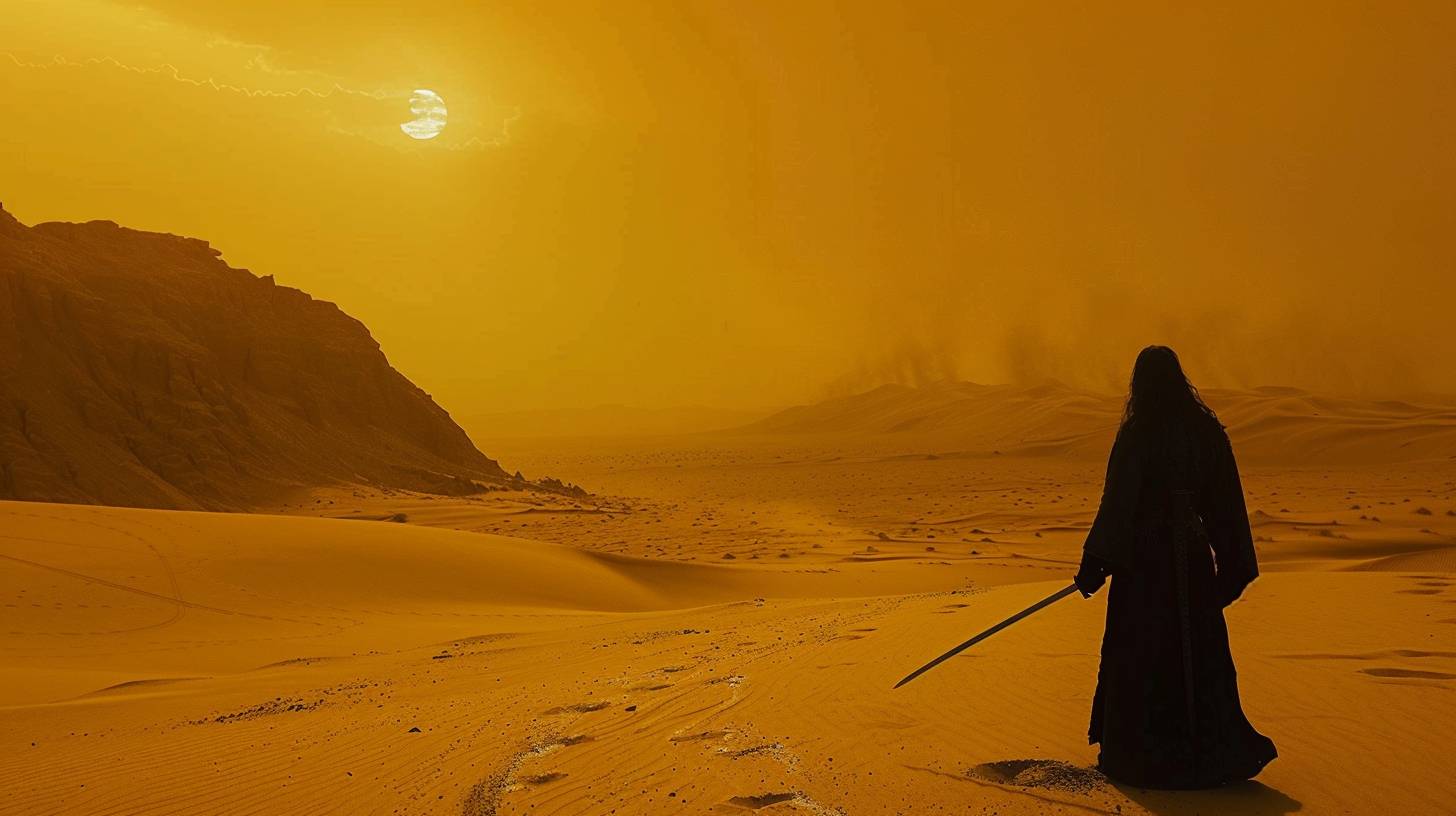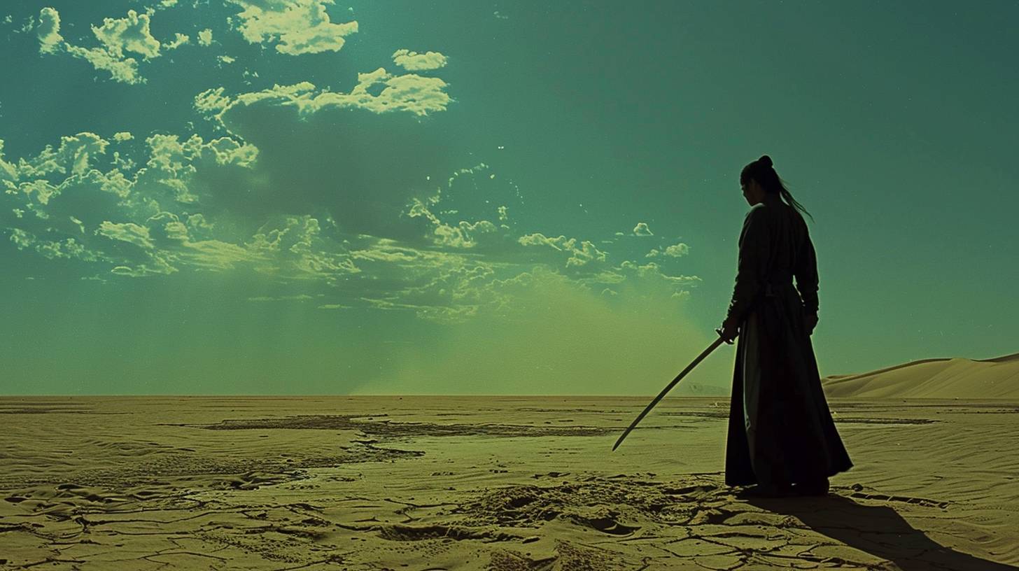 Um espadachim sozinho no deserto, filme estilo Wong Kar Wai.