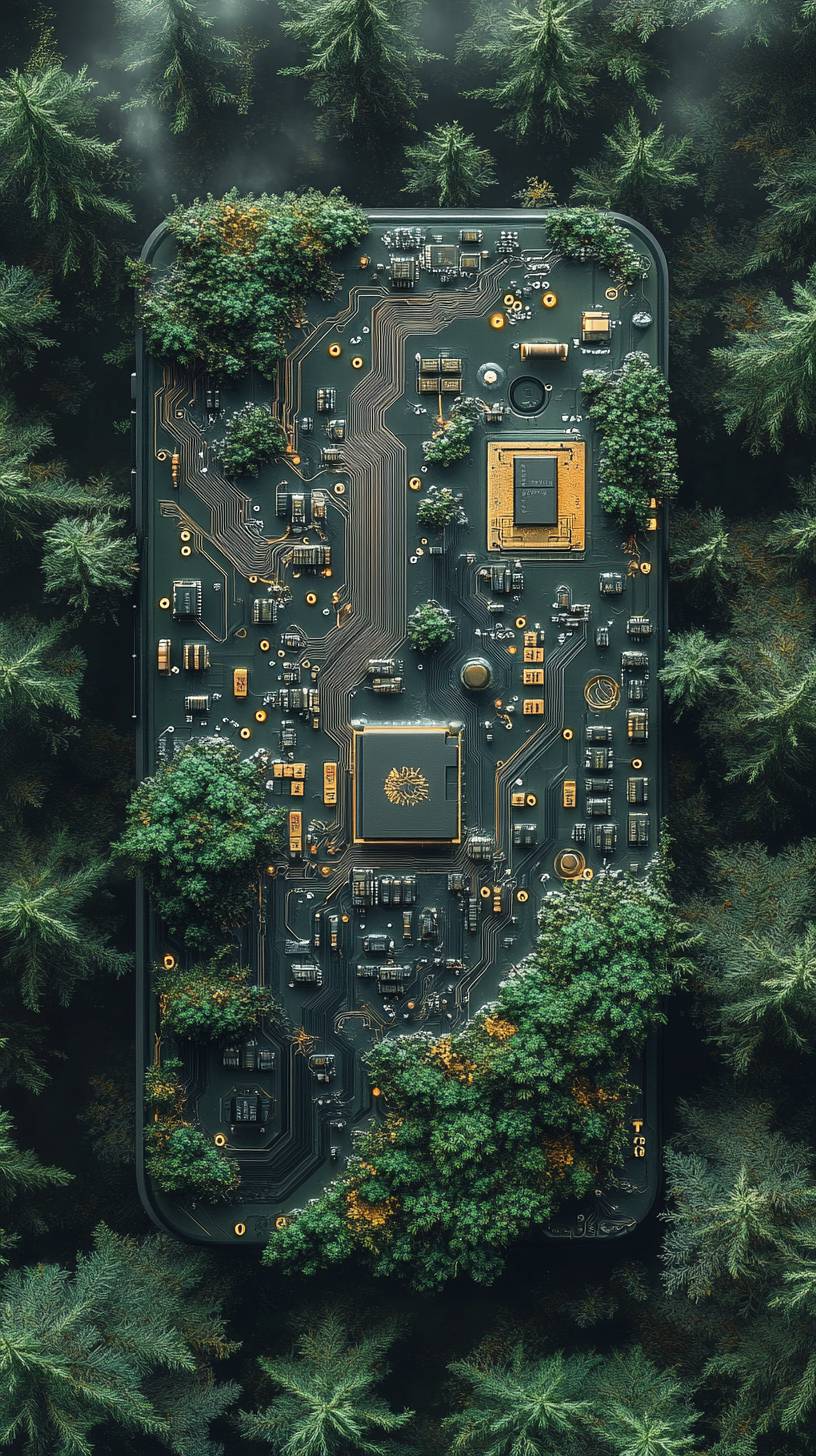 Стиль обоев внутренней схемы iPhone 16 Pro с мини-лесным экосистемой
