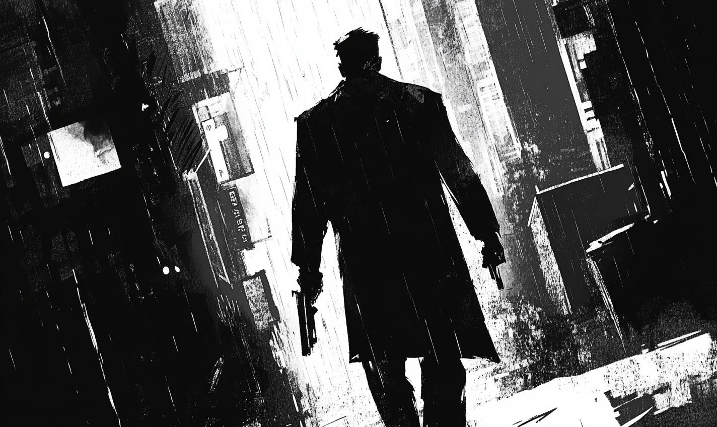 Разработайте [ТЕМА] в стиле неонового нуара в графическом романе, с резкими линиями, высоким контрастом и грубой текстурой. Используйте черно-белую основу, дополненную стратегическими брызгами [ЦВЕТ1] и [ЦВЕТ2] для подчеркнутия ключевых элементов.