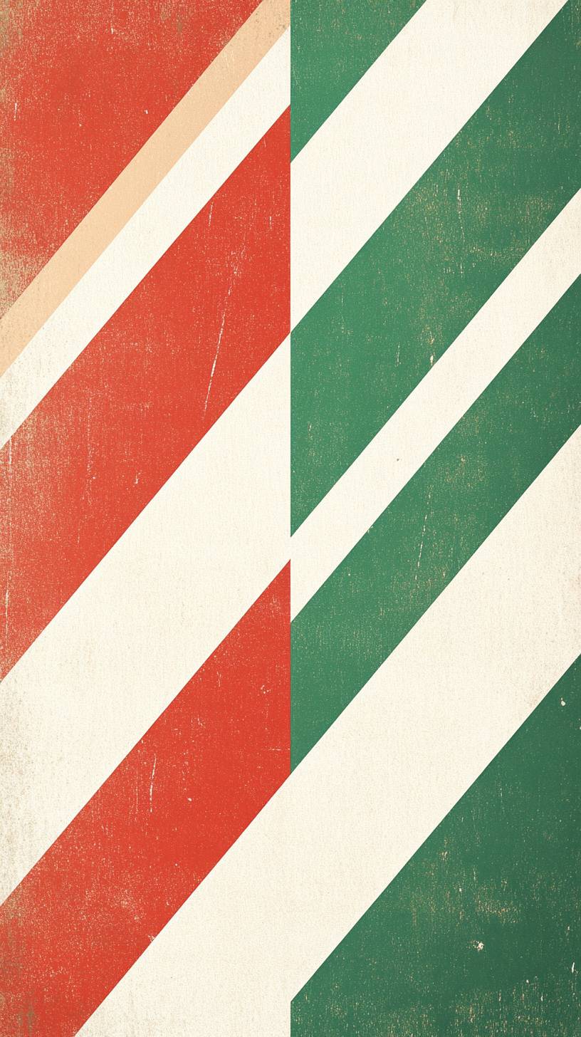 simple red, green and cream diagonal strip pattern, with a retro christmas vibe, simple design, clean line, minimalistic aesthetic --chaos 10 --ar 9:16 --v 6.1