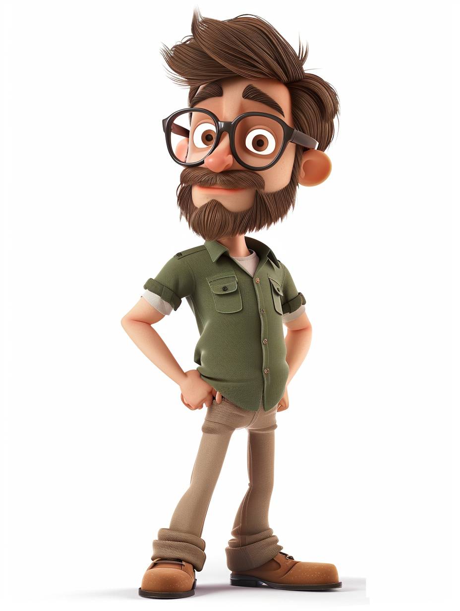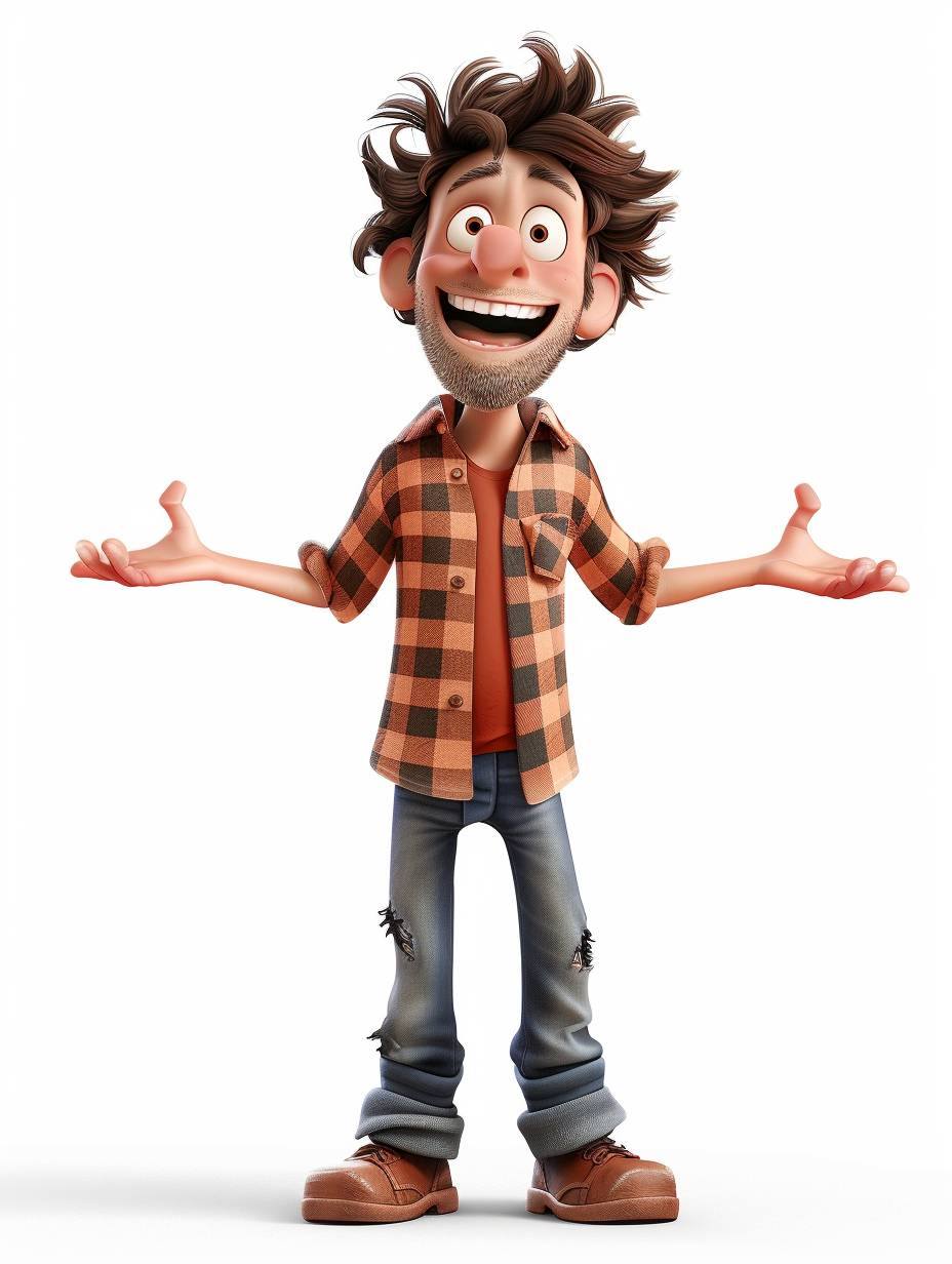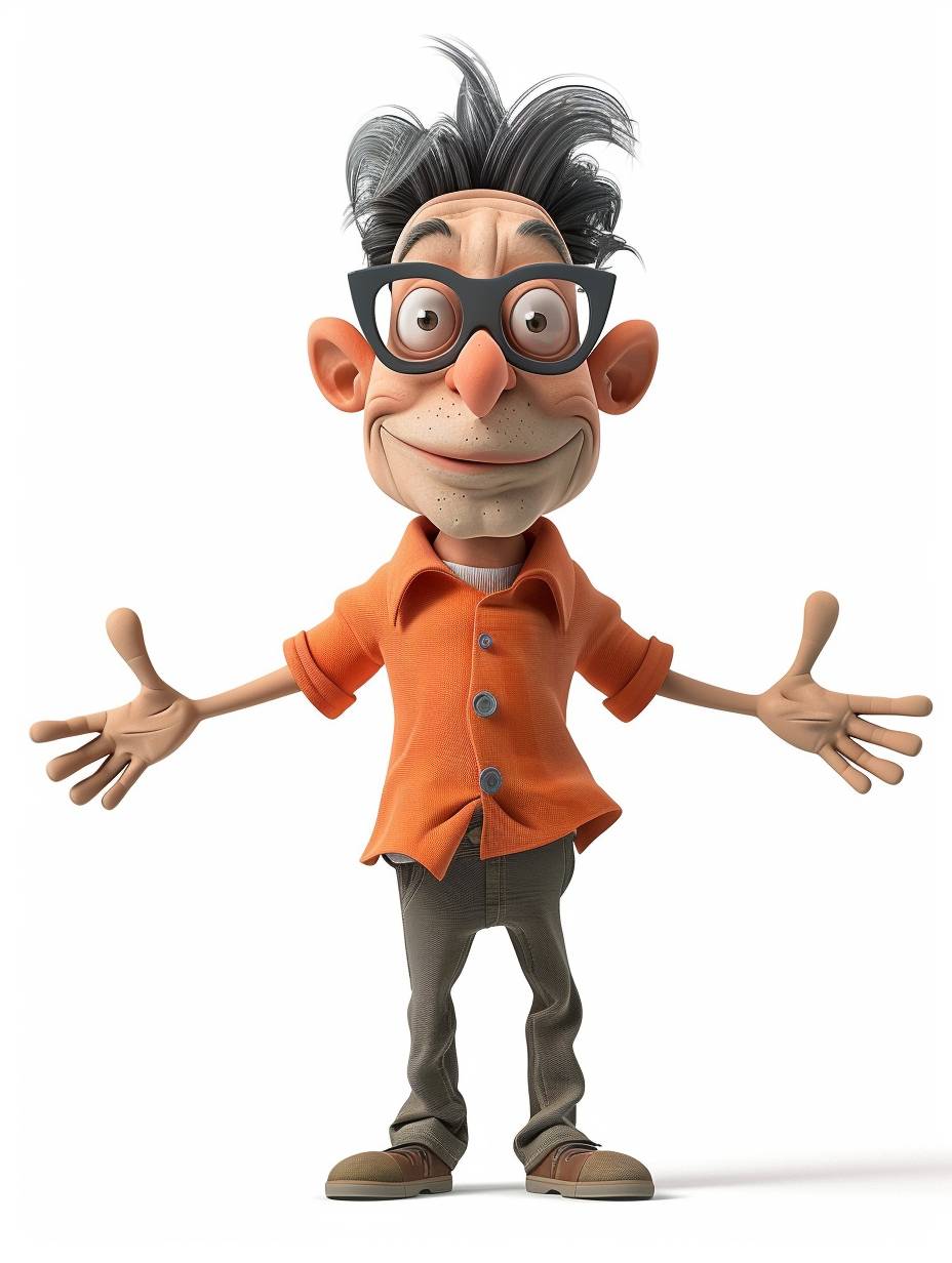 Один смешной персонаж, 2D, без теней, цветная рубашка, чистый, чистый белый фон