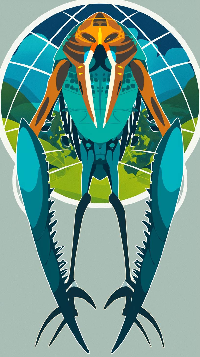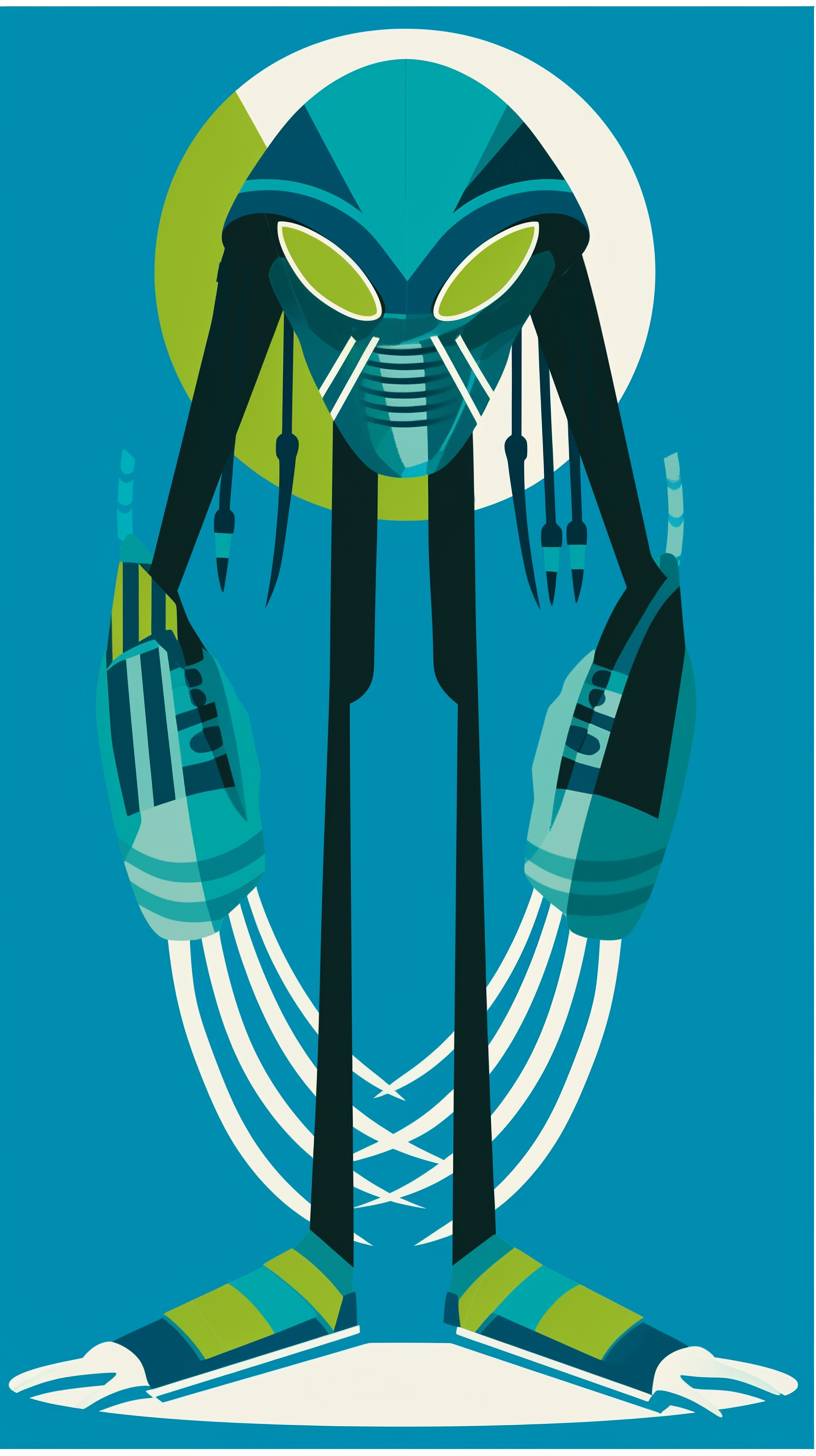 A simple drawing of Predator, in the style of Allie Brosh with simple lines, flat colors and a stick figure, minimalistic, simple background --ar 9:16 --style raw --sref 1781590942 --niji 6