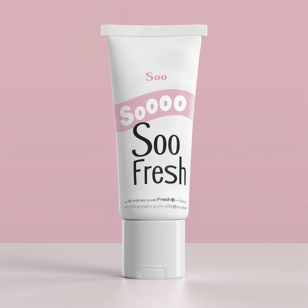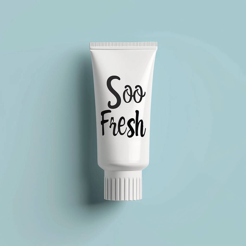 Реалистичная макета тюбика зубной пасты, созданного и напечатанного Роуз Уайли, с текстом "Soo Soo Fresh".