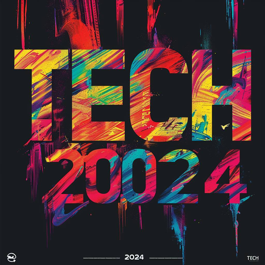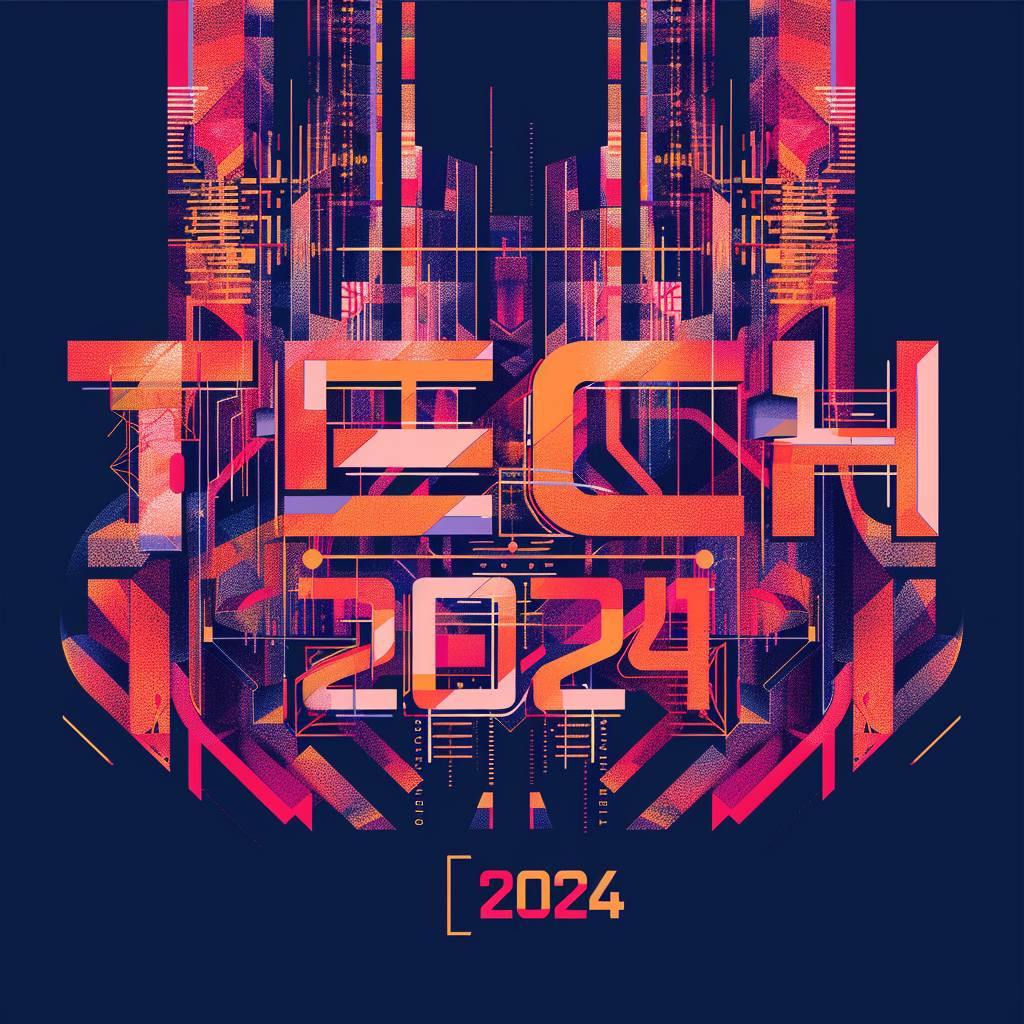Постер фестиваля техно-музыки с симметричной композицией. Текст «TECH 2024» большими буквами.