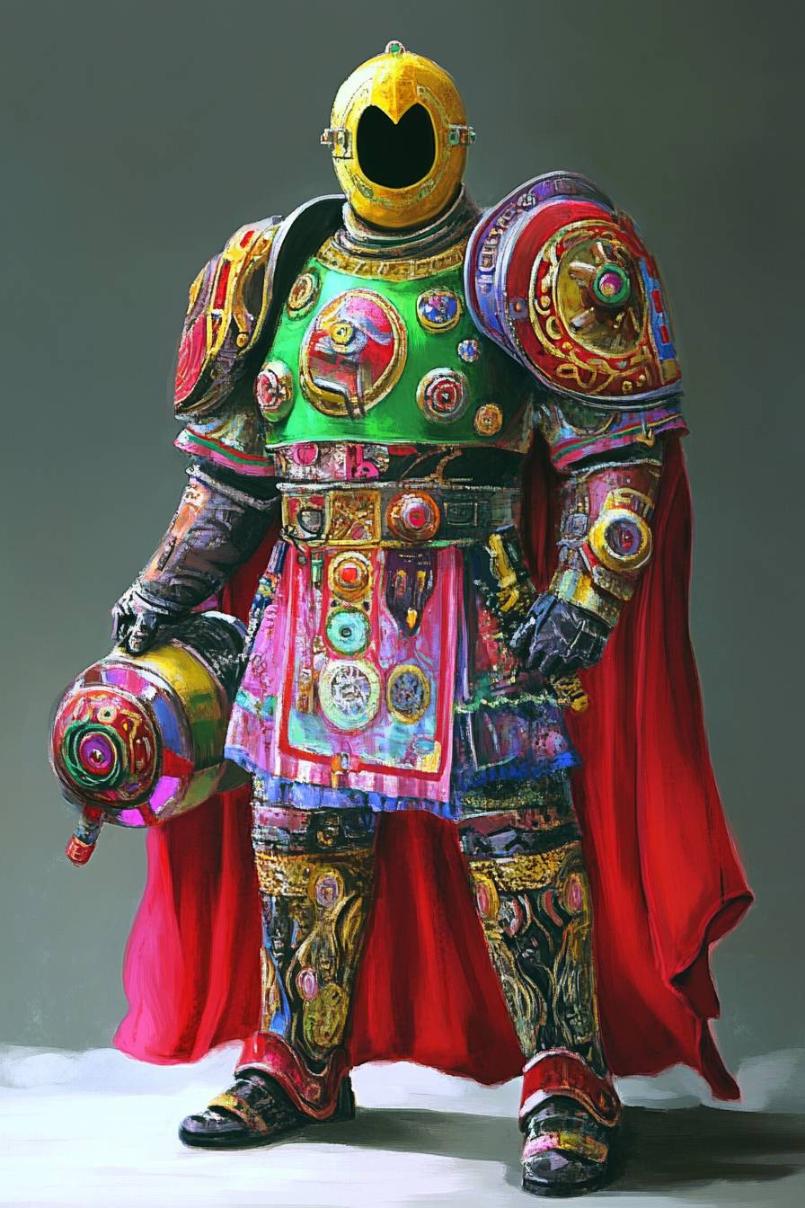 Концептуальное искусство дизайна персонажа ретропанк парового рыцаря.