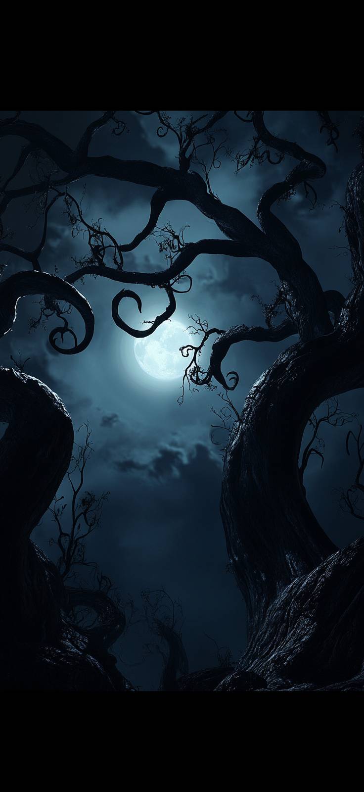 Темные обои в стиле Pixar с извивающимся дизайном.