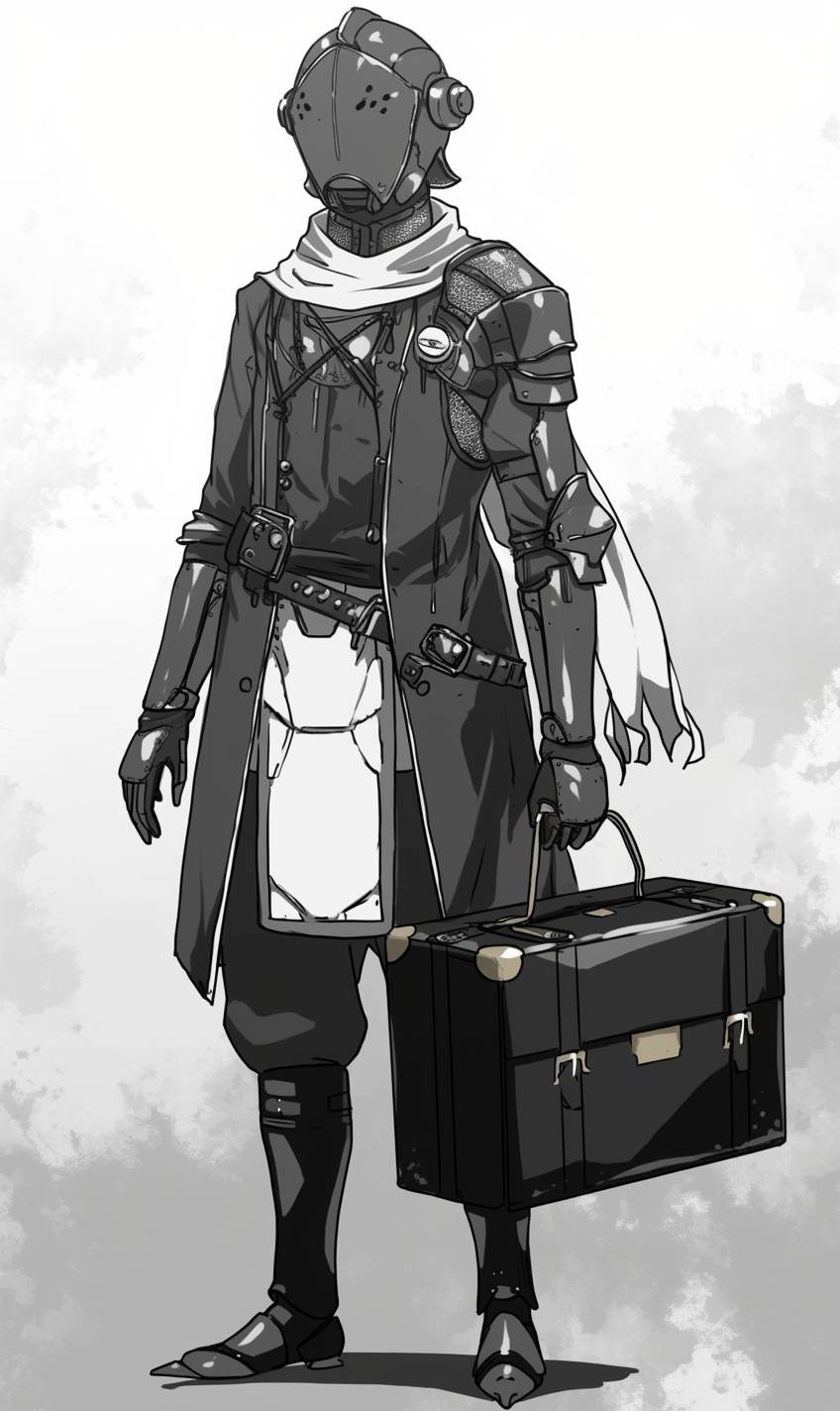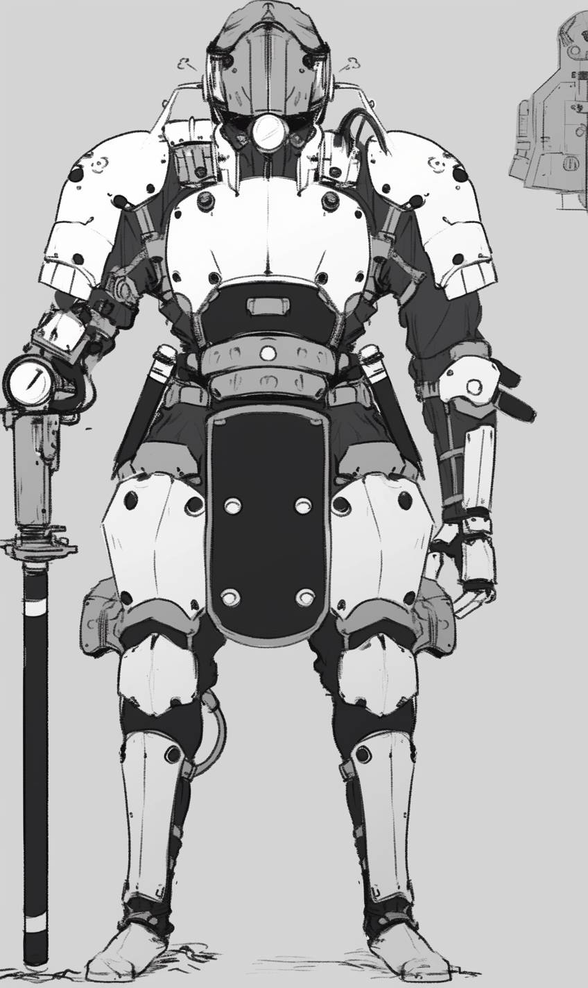 Концептуальный арт-дизайн персонажа ретропанк парового рыцаря
