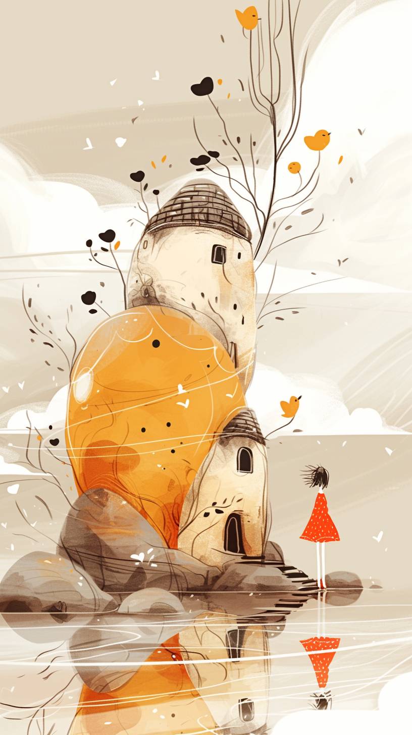 Strange house, Gourme,funny paintings, minimalism --ar 9:16 --sref 3134913234 1070299845 --niji 6 --style raw