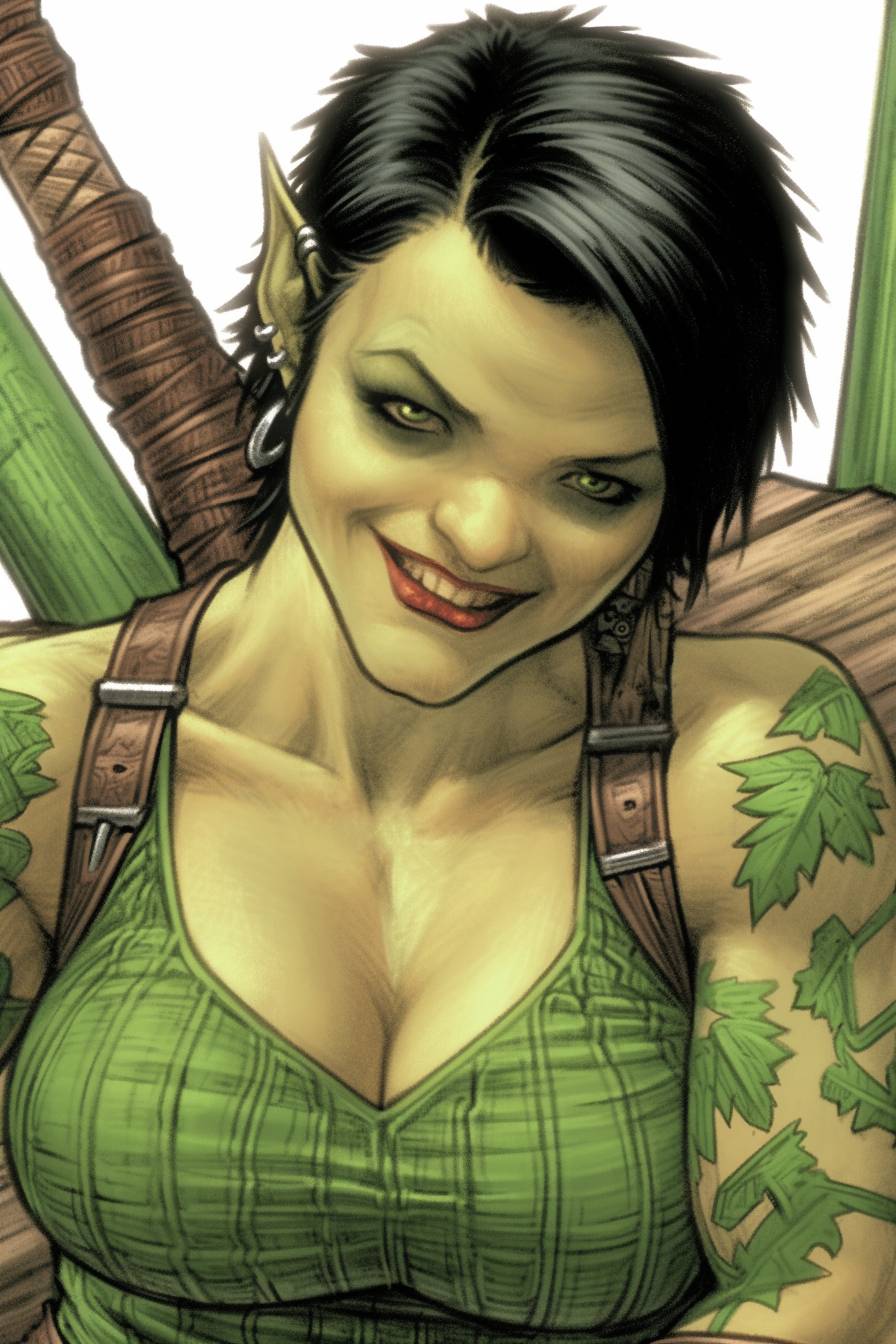 Ошеломляющая женская маг-советник с предками облачного гиганта, стоящая высоко и могущественно на фоне грандиозного пейзажа Dungeons & Dragons. У нее бледная серая и светло-голубая кожа, украшенная сложными синими татуировками ветра, плавно текущими по ее рукам и лицу. Ее глаза сверкают тайной мудростью, отражая ее ученую натуру. Несмотря на ее детскую внешность, она опытный воин — сильная, стройная и в доспехах. Она держит таинственный посох и изящно сделанное копье, излучая как элегантность, так и силу. На фоне изображен обширный магический мегаполис с высокими шпилями, арканическими огнями и древними библиотеками. Атмосфера сочетает в себе фантастический реализм и эпическое повествование, с мягким магическим освещением и ощущением приключения.
