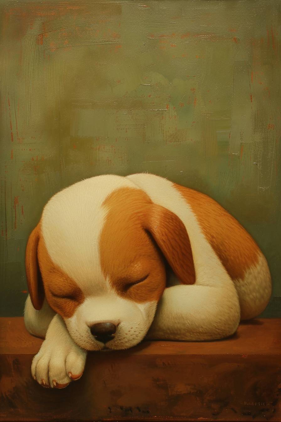 Спящая щенок, написанная Люй Е