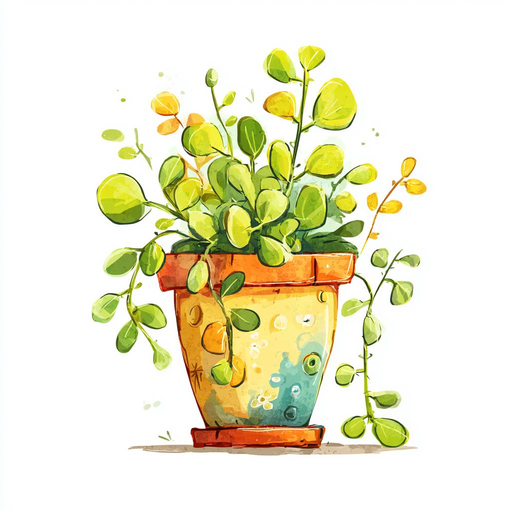 Мексиканское растение в ярком горшке, на прозрачном фоне.