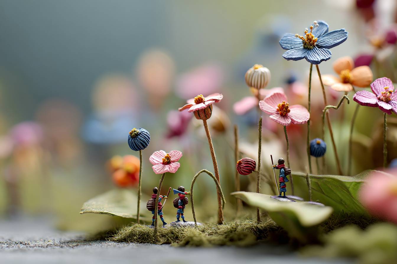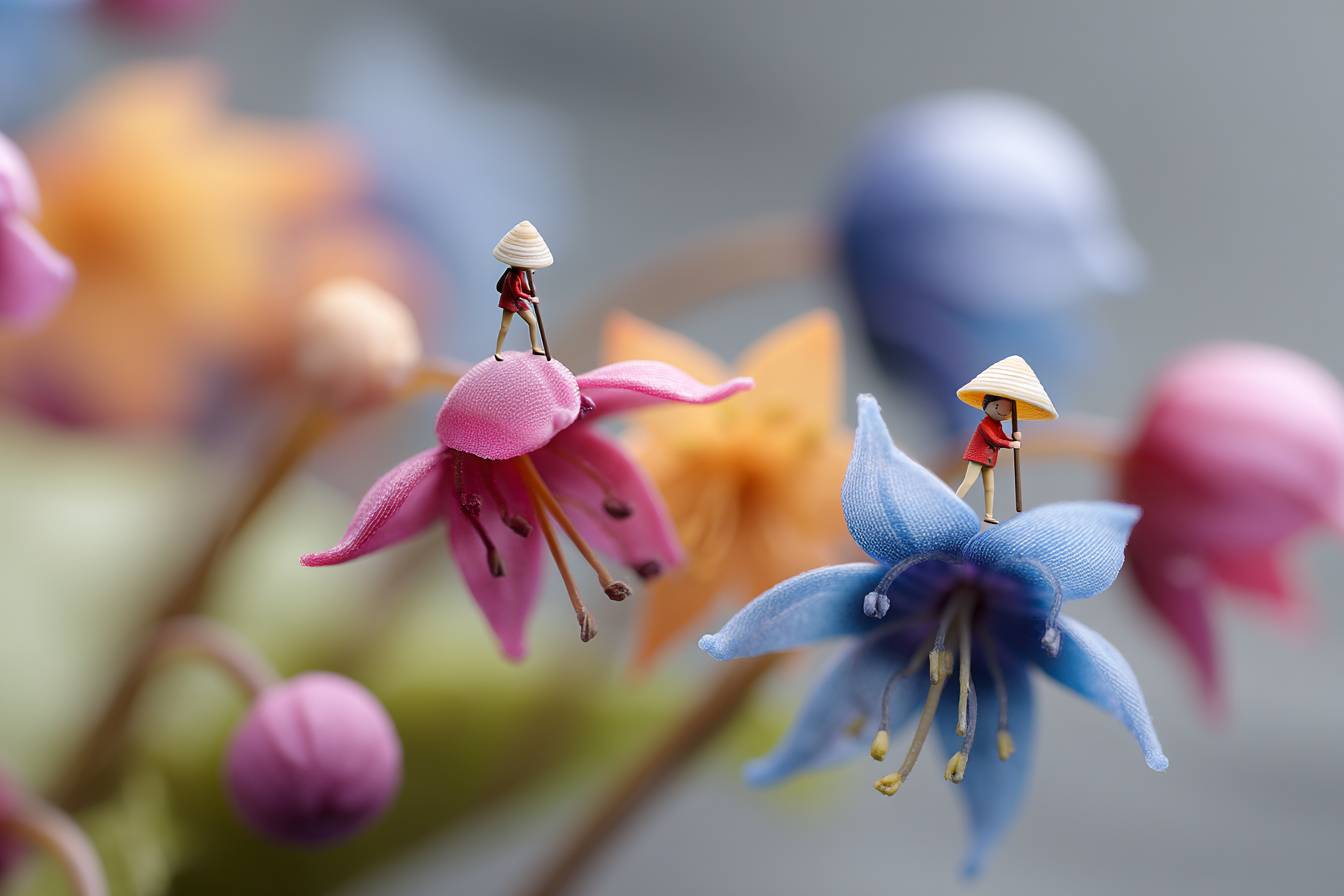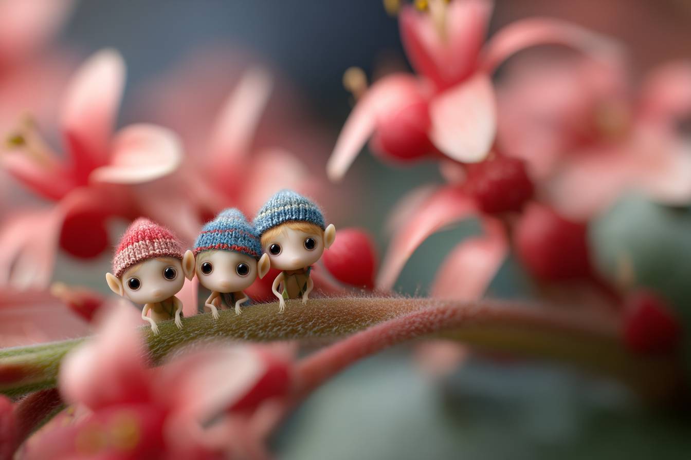 Супердетализированное макро-фото маленьких эльфов, живущих в цветах