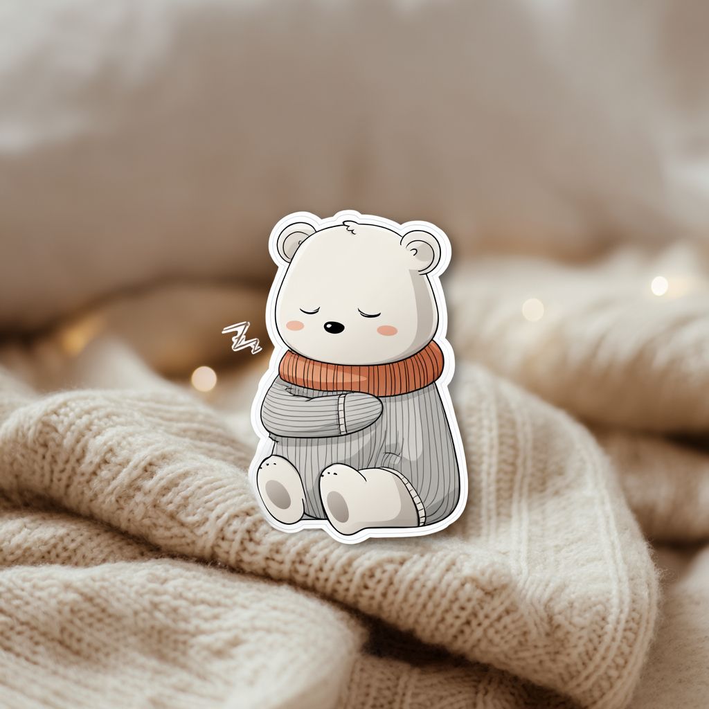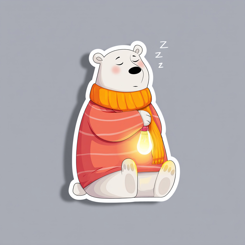 Наклейка с ночником в виде обнимающего мультяшного белого медведя, уютный стиль, белый контур, пустой фон
