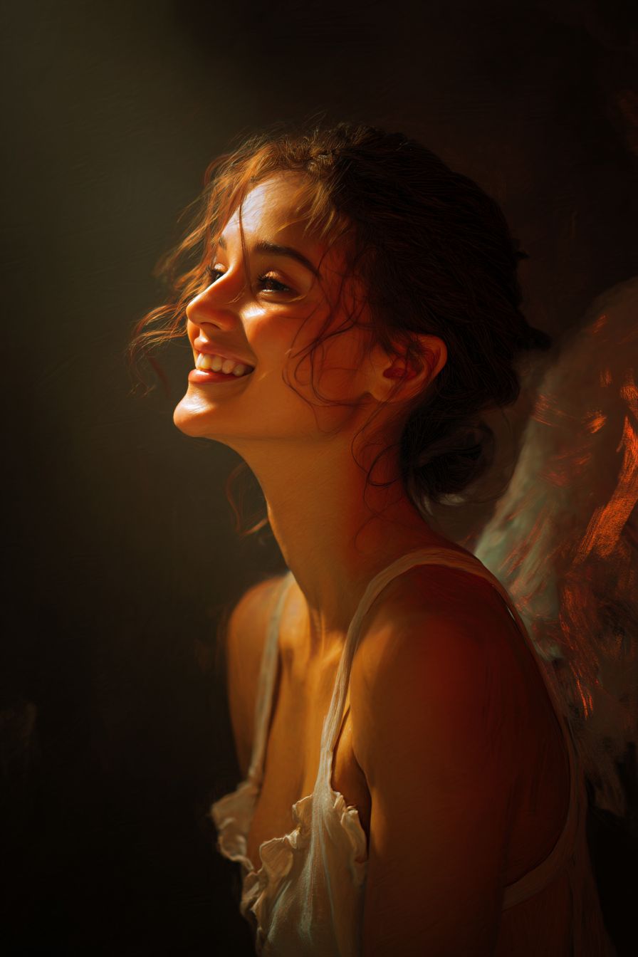 Счастливая женщина, светящаяся и стройная, как ангел.