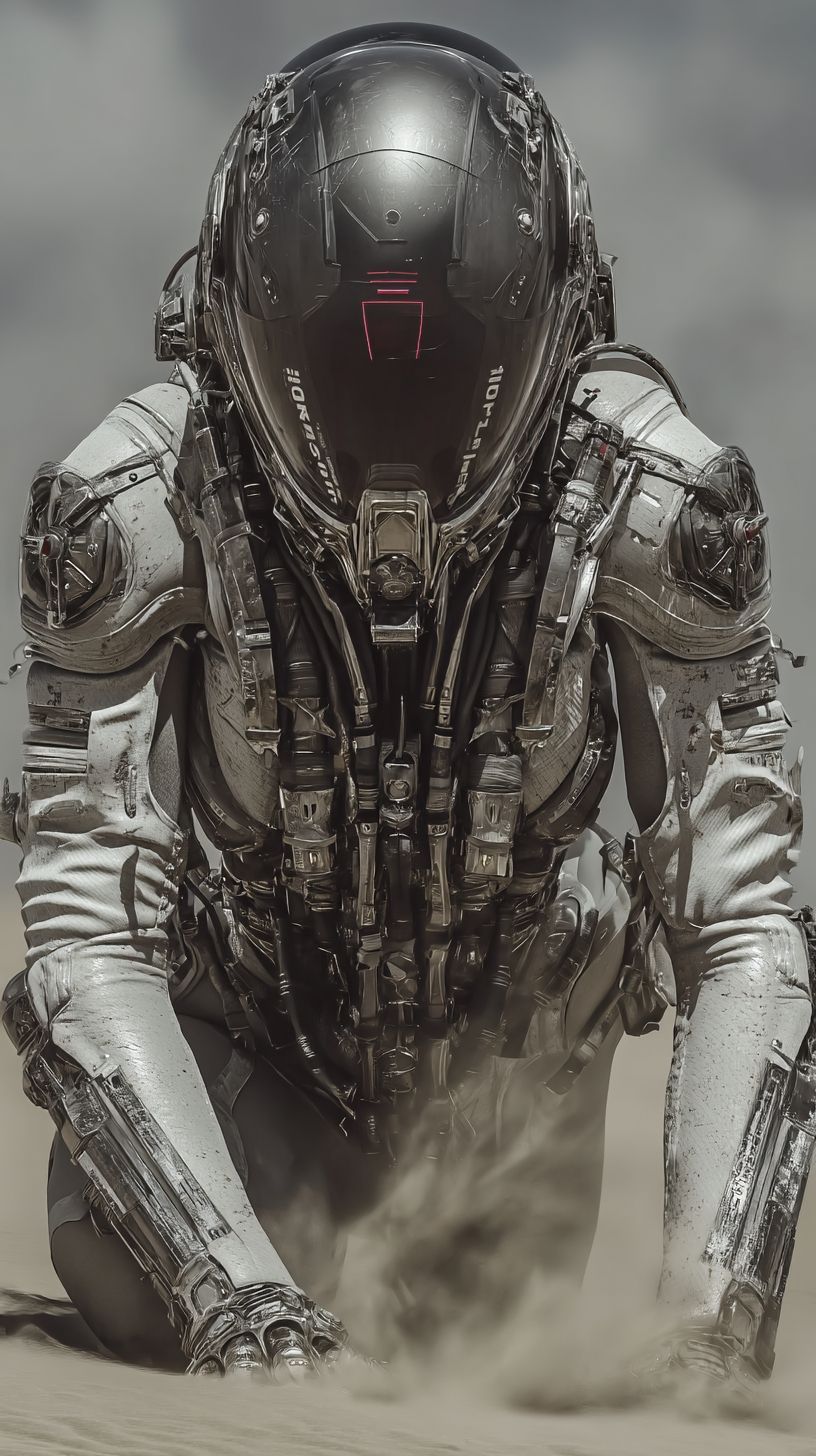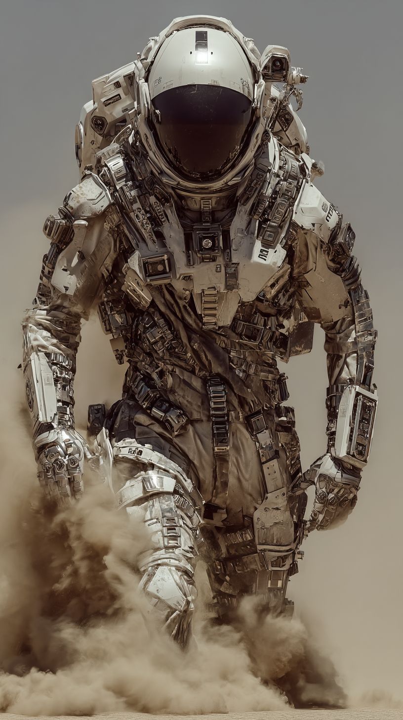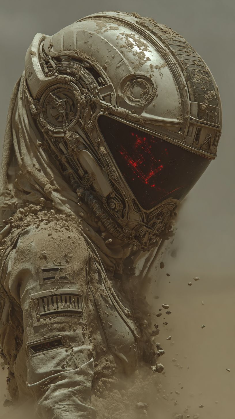 a lone astronaut emerging from the glass screen of an iMac computer half-buried in desert sand, wide surreal desert landscape, cinematic composition, dramatic lighting, sepia and vibrant color grading, high-detail 3D render, soft particles and wind effects in the background, symbolic and futuristic tone --ar 9:16 --raw --stylize 700 --v 7.0 --p qbktiqd
