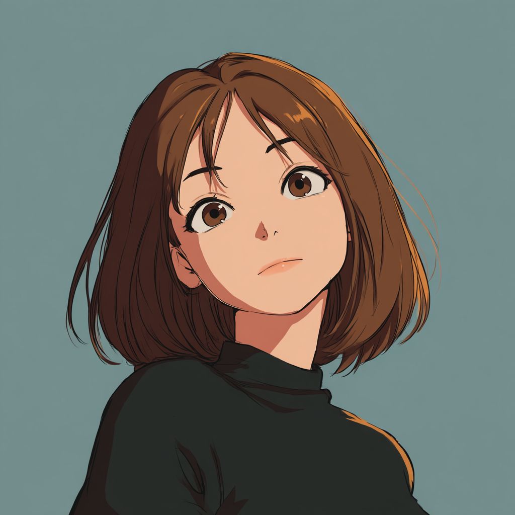 Тематика аниме, объект в центре, крупный план части персонажа, простой фон, плоские цвета, аниме-стиль, портрет верхней части тела, простой мультяшный стиль