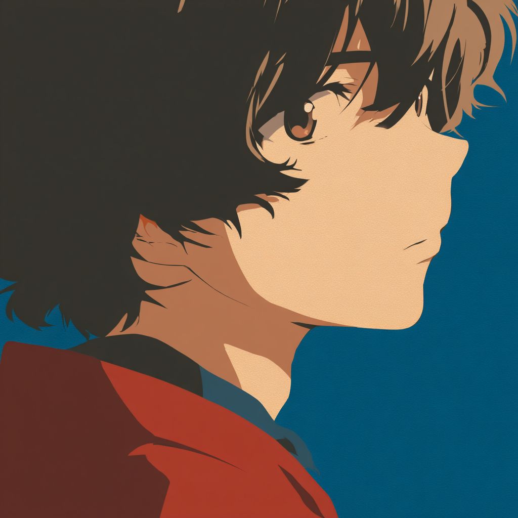 Аниме-тема, крупный план персонажа, простой фон, плоские цвета
