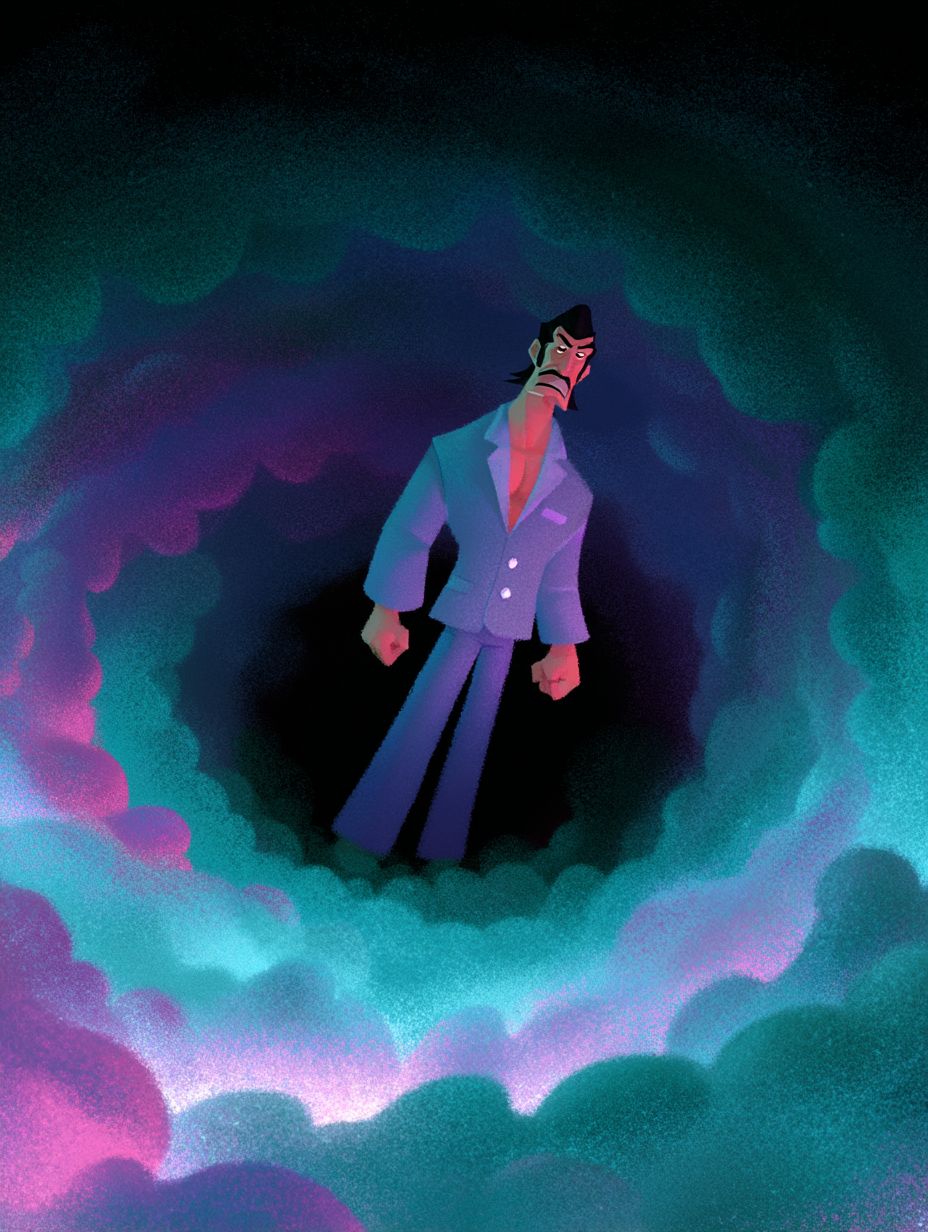 Иллюстрация босса якудза, попавшего в водоворот