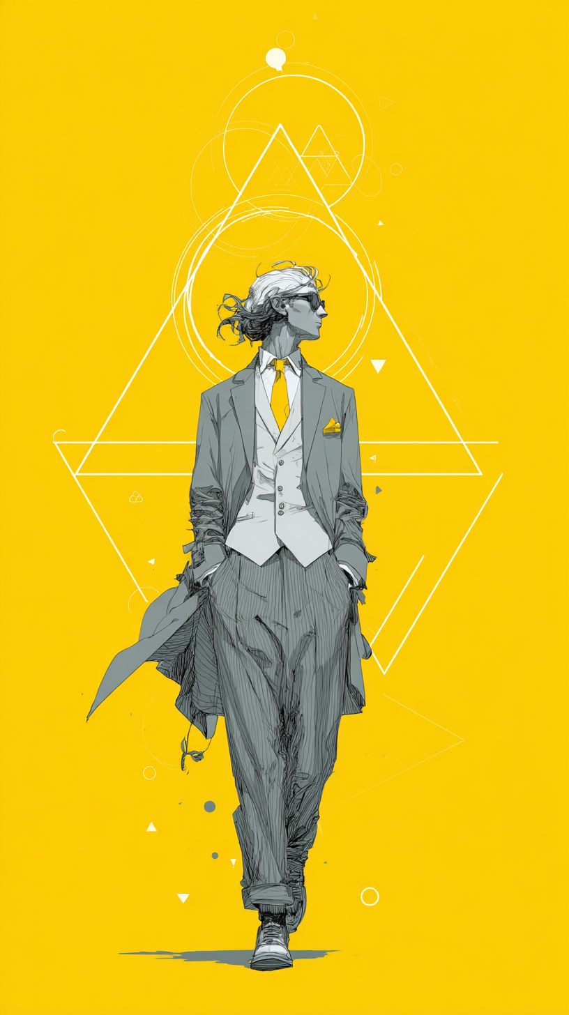 The rules embody the lover of life, minimalist geometry, functional characters, solo performance, whitespace, micro-comic style, pure color silky texture background, satire. --ar 9:16 --raw --v 7.0 --s 250