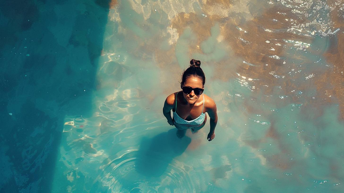 Аэрофотография женщины в солнцезащитных очках.
