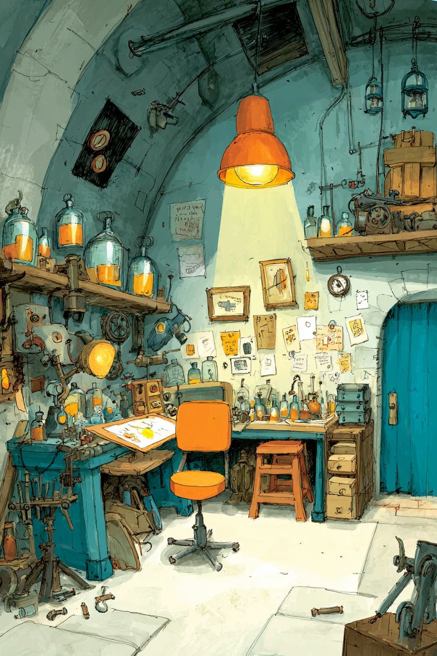 A steampunk inventor in a cluttered workshop, brass gears and glowing vials, intricate machinery humming, warm lantern light, hyper-detailed, Victorian aesthetic, cinematic composition --ar 2:3 --sref 680572301 --v 7.0 --s 750
