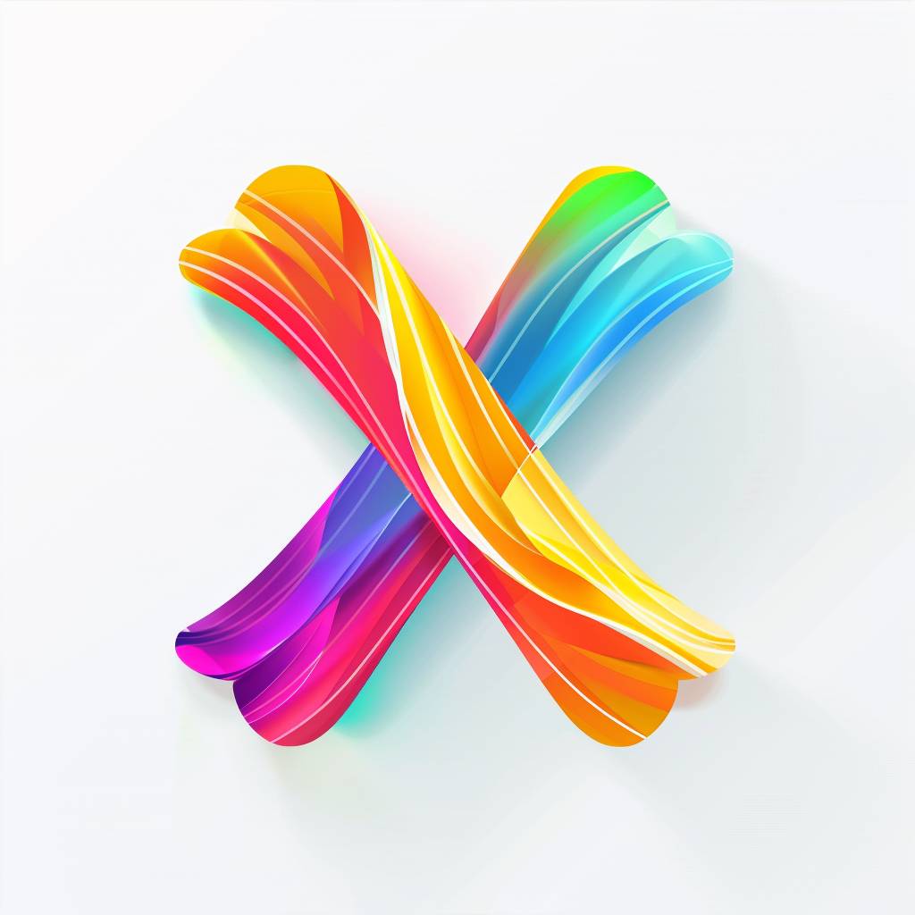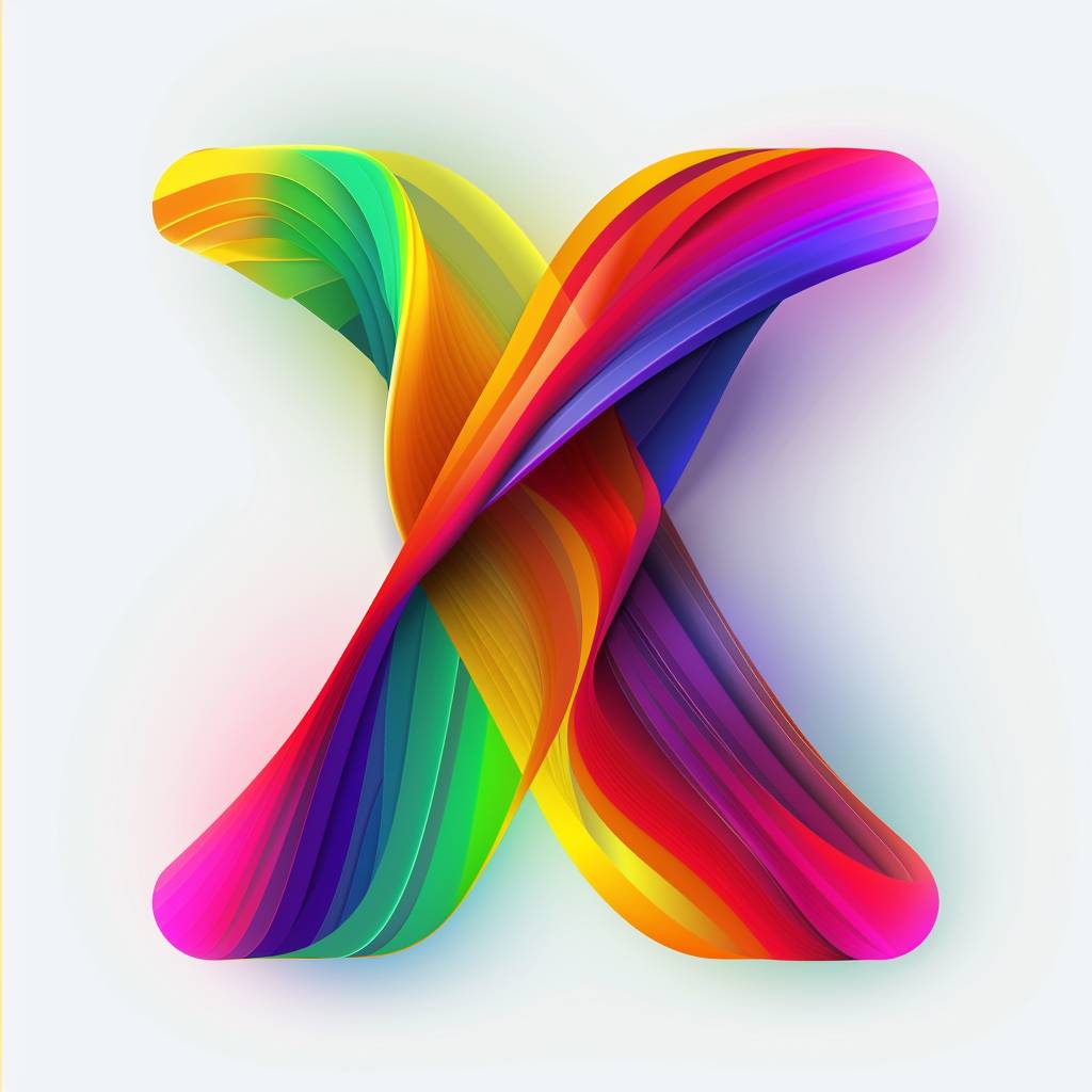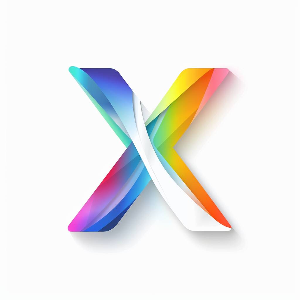 Веселый радужно-цветной логотип с буквой X на белом фоне, с мягкими тенями, в разрешении 8K.