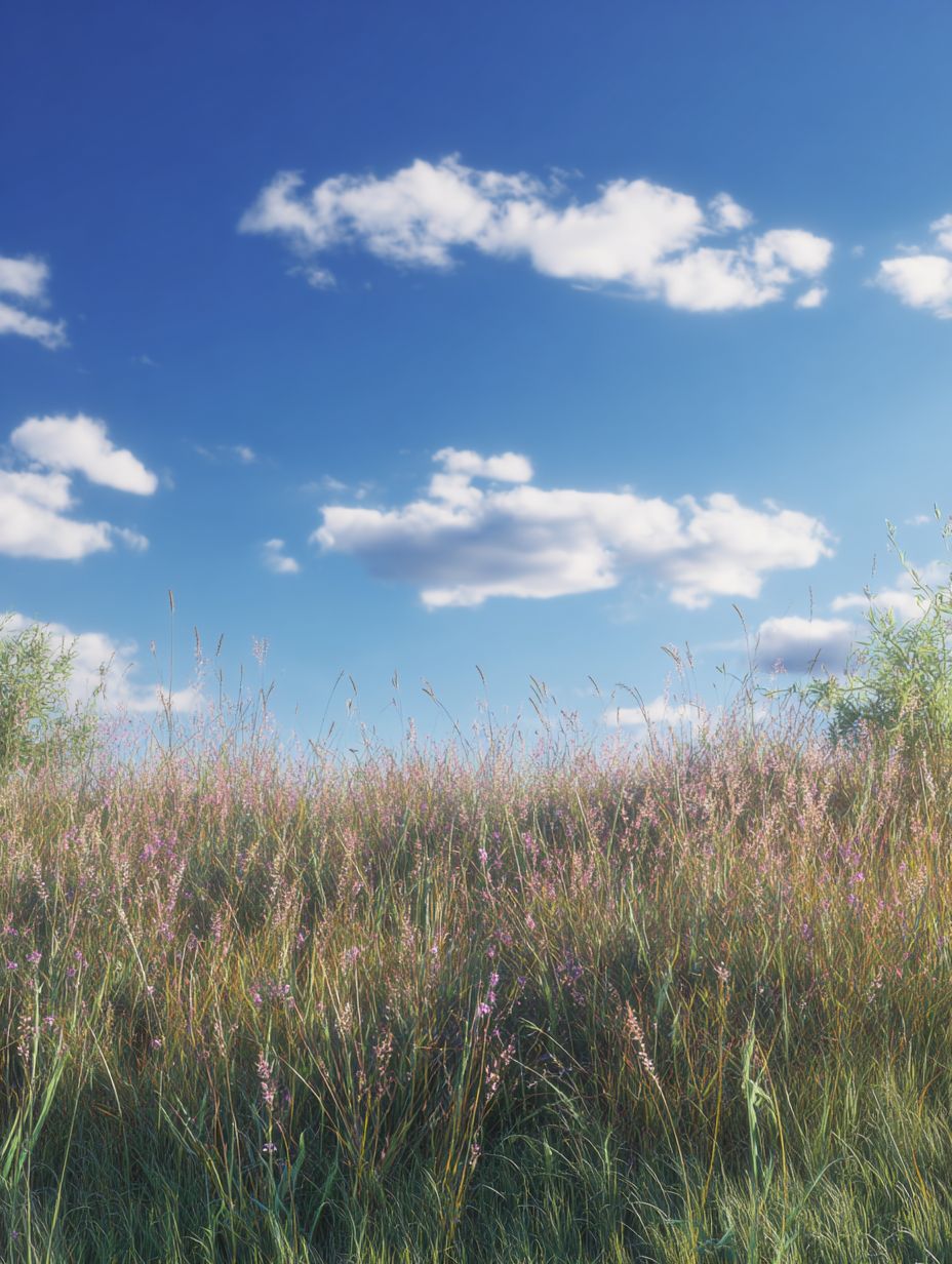 Фотореалистичное изображение органического луга под ясным голубым небом