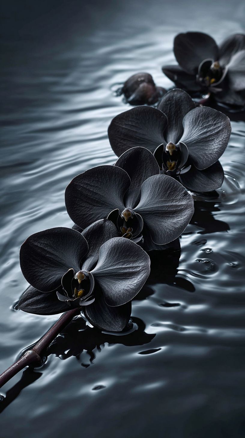 Сцена визуального продукта с черными орхидеями, создающая ощущение роскоши и глубины