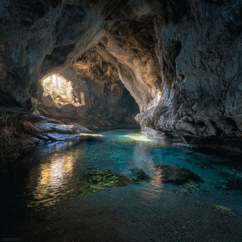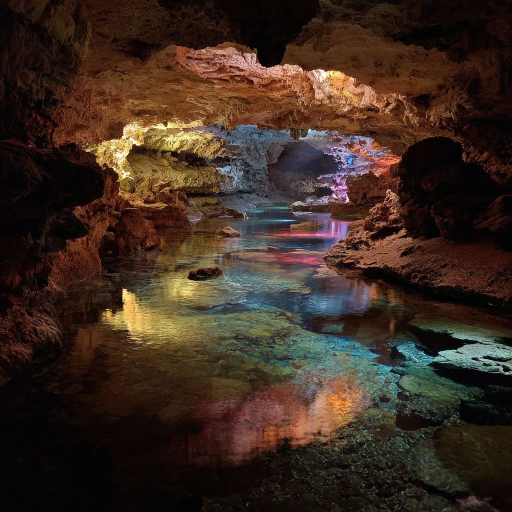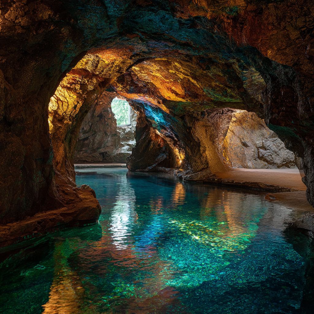 Красивый грот, сверкающий жизнью, светом и цветом