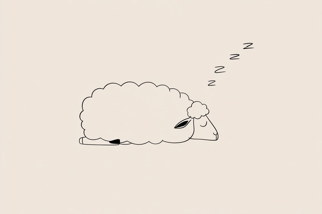 Очень минималистичная линейная иллюстрация овцы, засыпающей