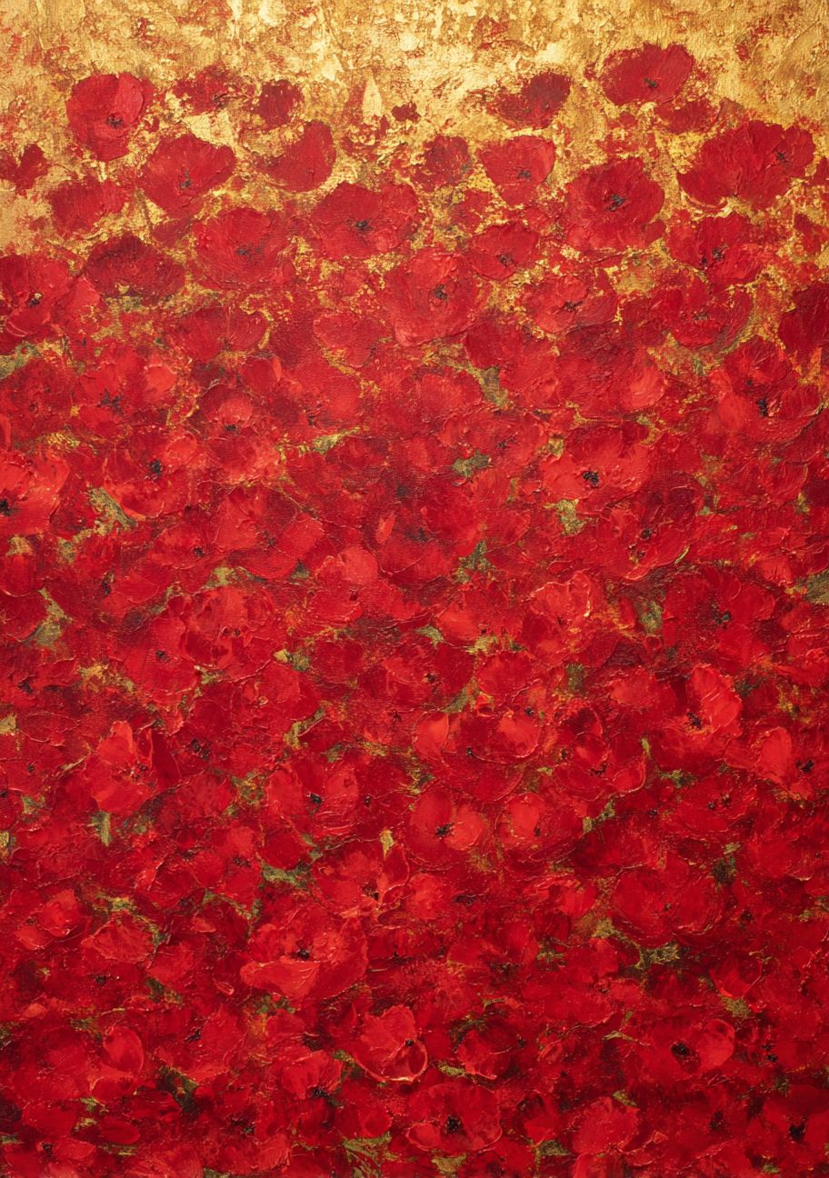 red wildflowers, a field of flowers, a textured painting, acrylic on canvas, a red and gold color scheme, oil paint. --ar 45:64 --s 50 --v 7.0 --raw