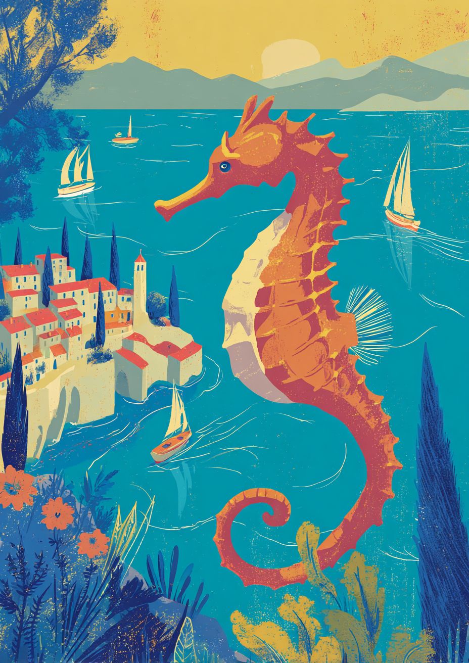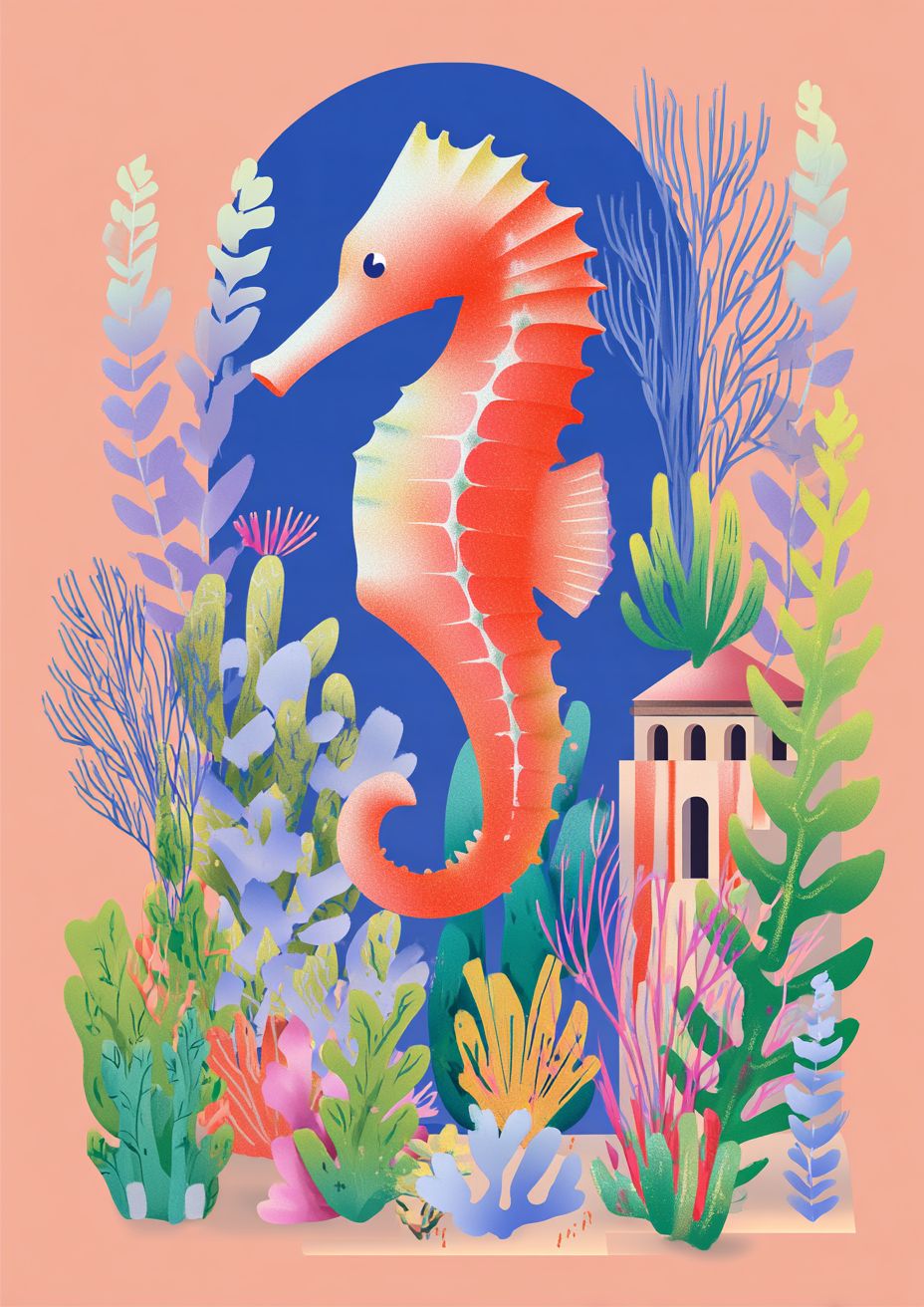 Sealife, seahorse and mediterranean nature by bo bartlett --ar 5:7 --raw --profile 1c3hnvg --s 50