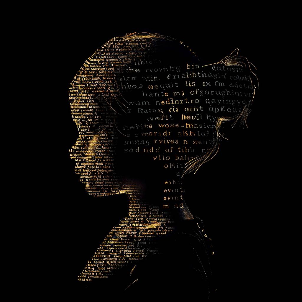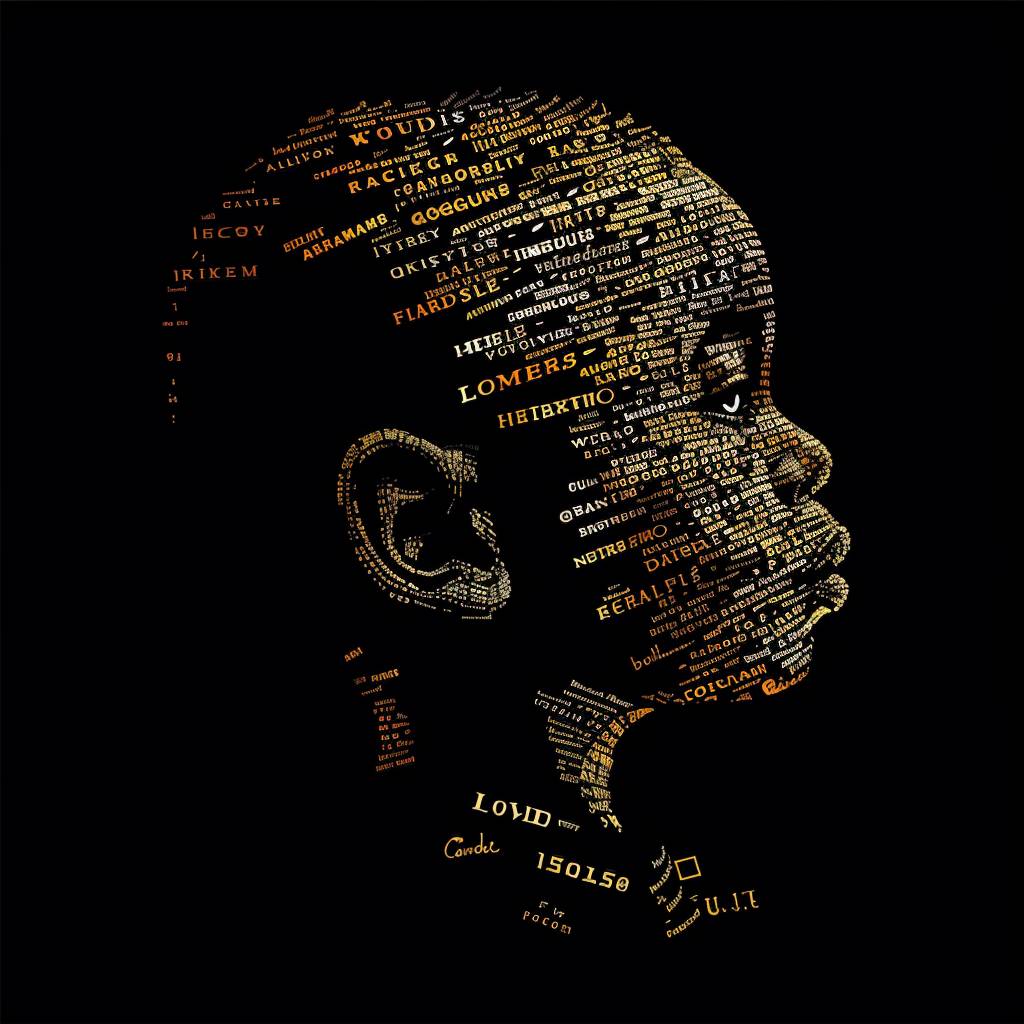 A portrait of a child made of words, in the style of vector illustration, golden light, high contrast, silhouette lighting, black background, typography art --v 6.0