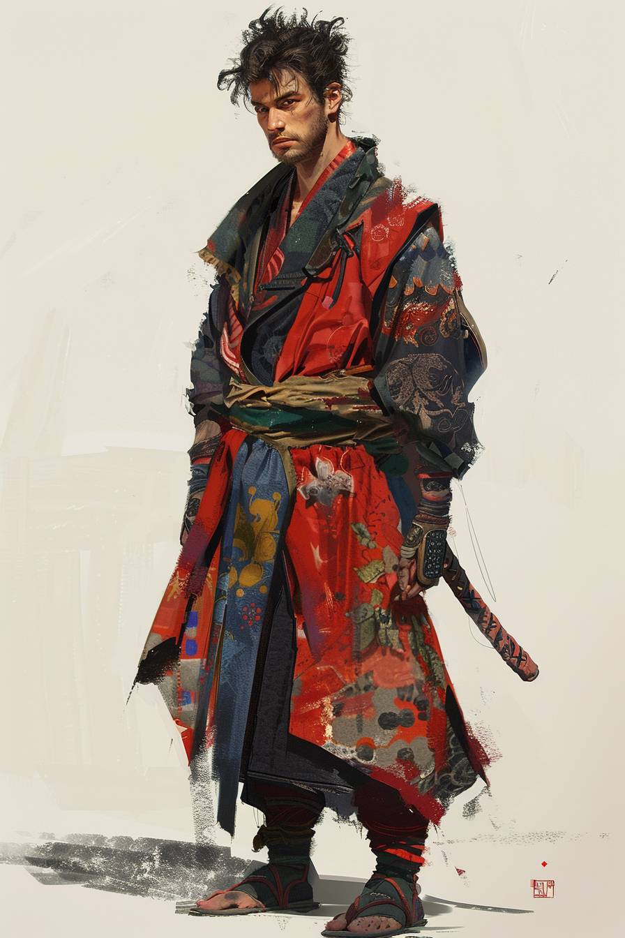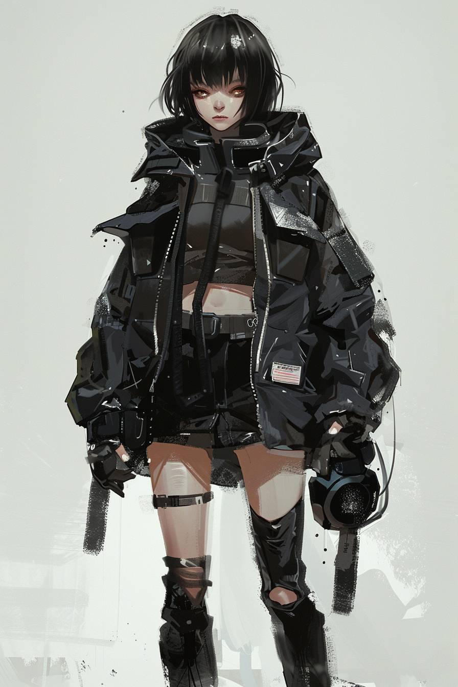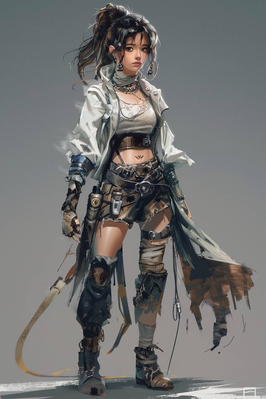Дизайн концепции персонажа в стиле Макото Кобаяси, полуторное тело