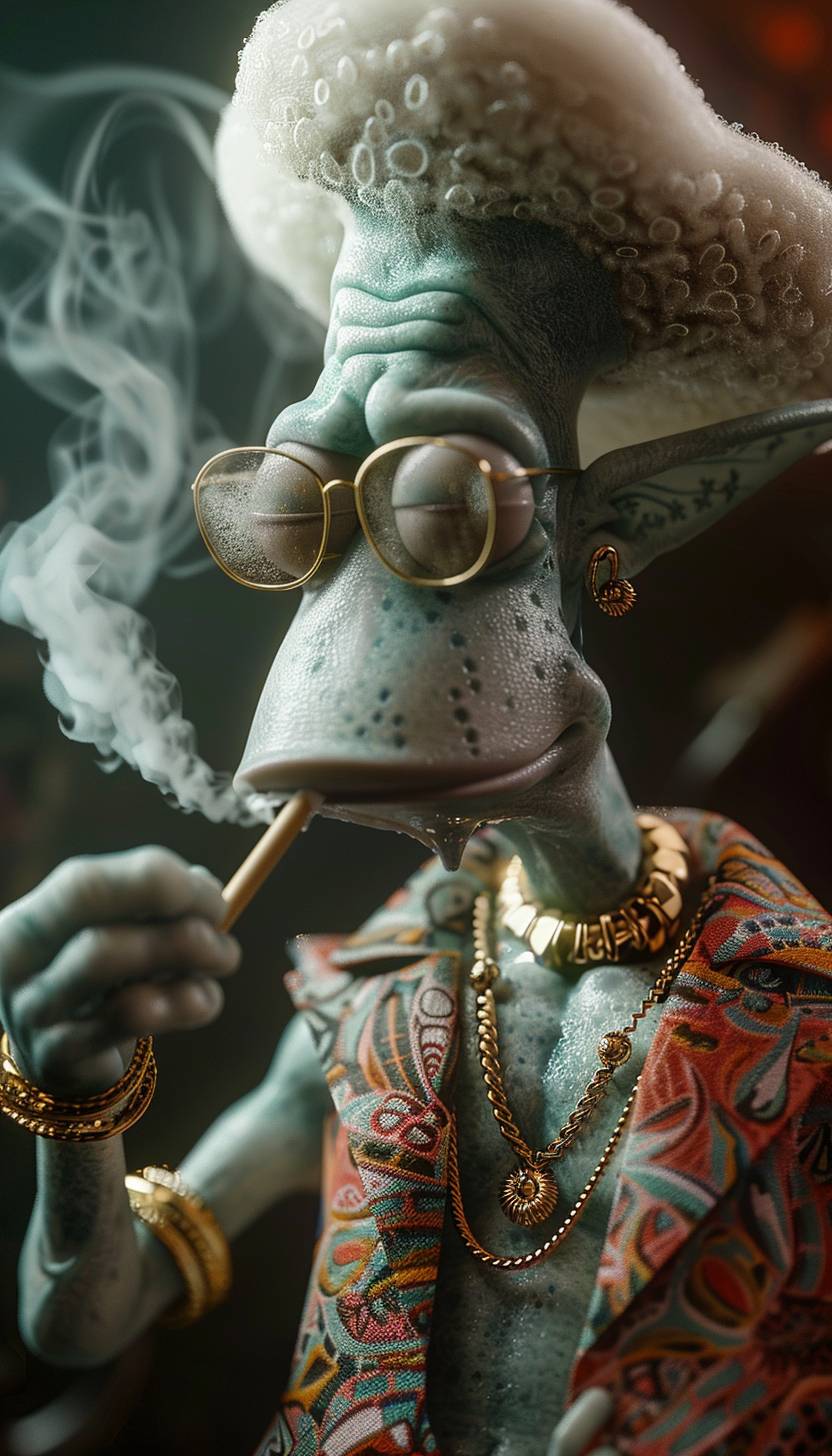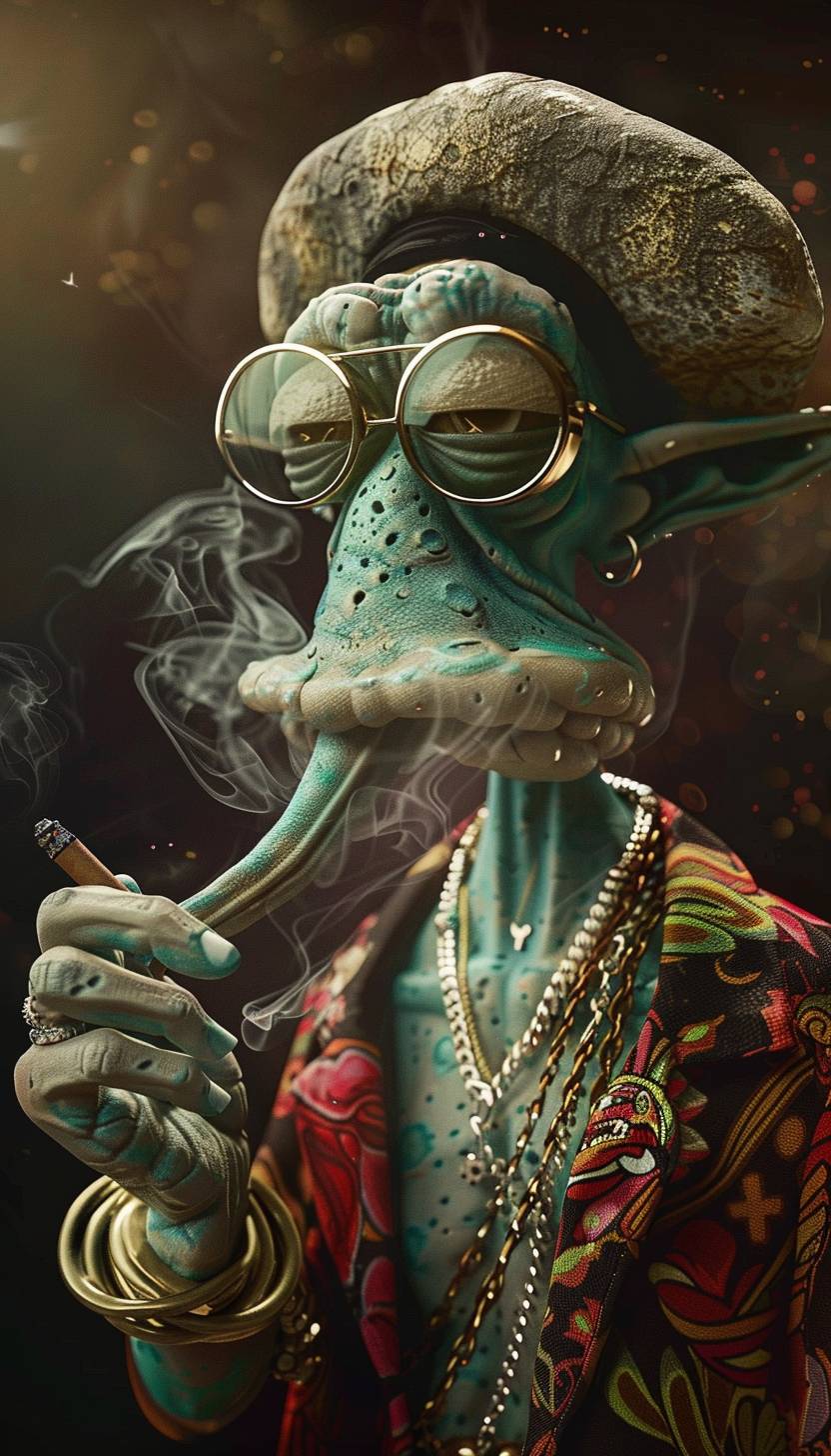 Сквидвард курит косяк в одежде гангстера 90-х.