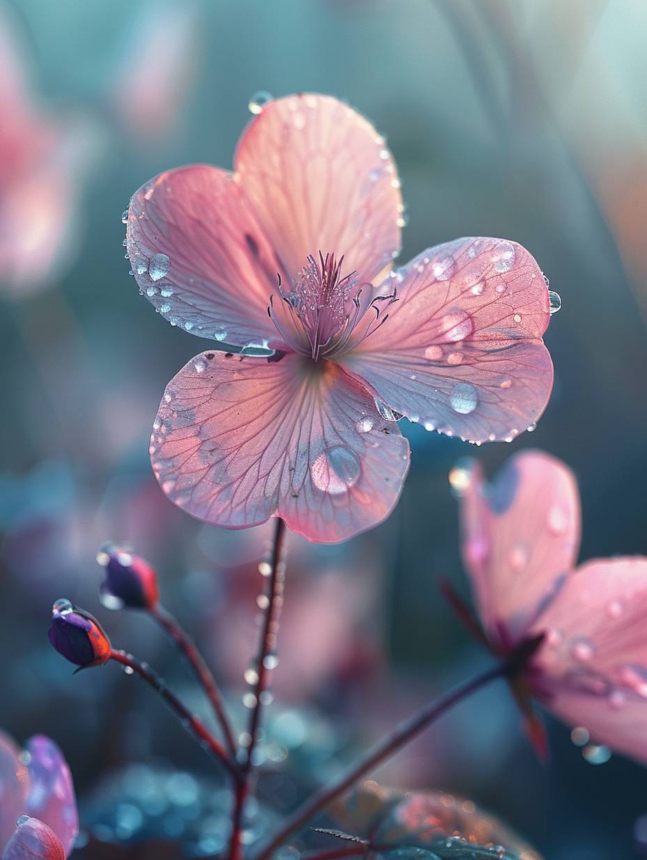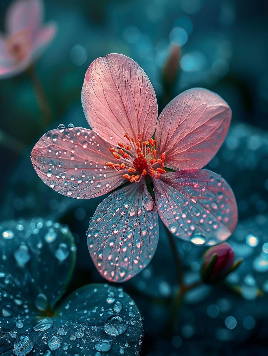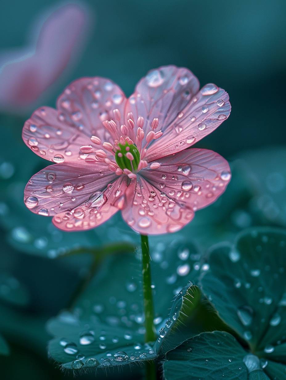 There is a flower that is a pink four-leaf clover, whose petals are transparent, deep as the sea, crystal as dew, and it can feel the loyalty and purity of love,8K,FHD --ar 3:4 --c 2 --s 350 --v 6.0