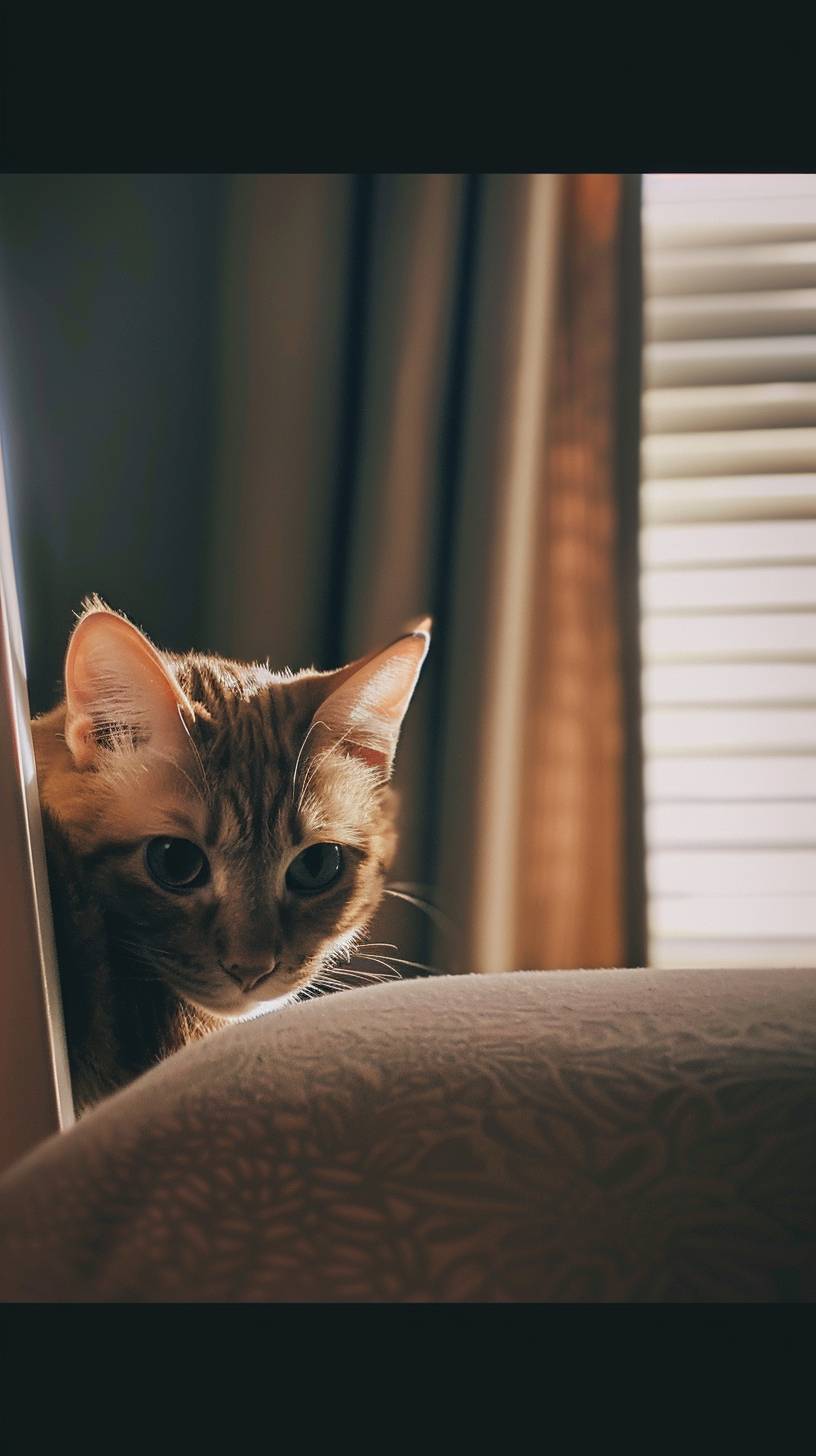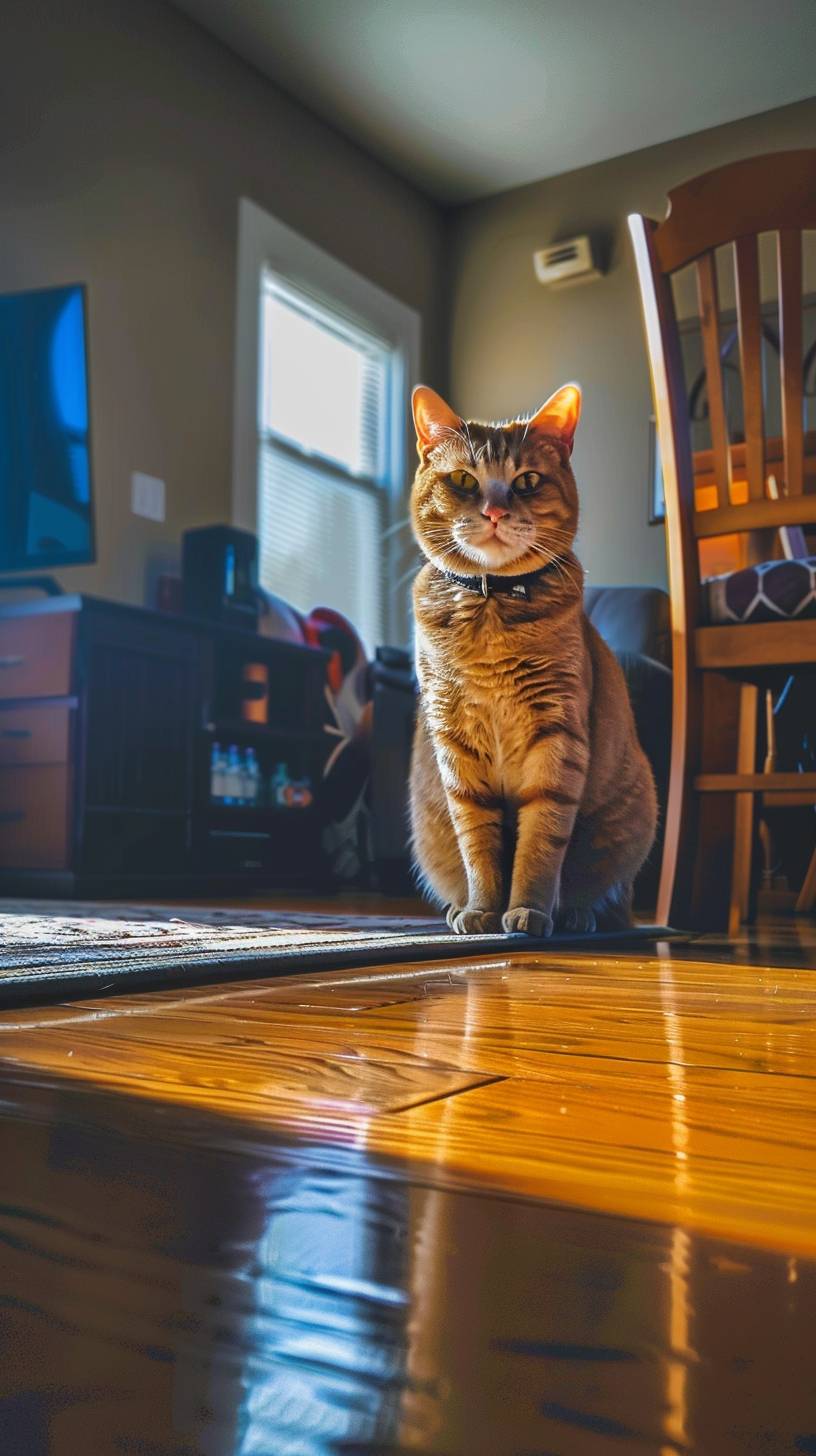 Фото оранжевой кошки в комнате, сделанное на телефон