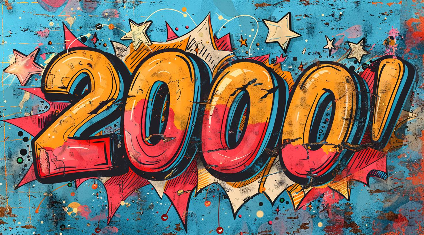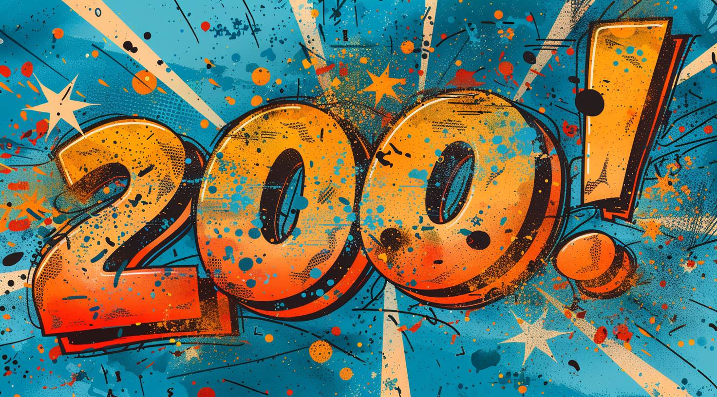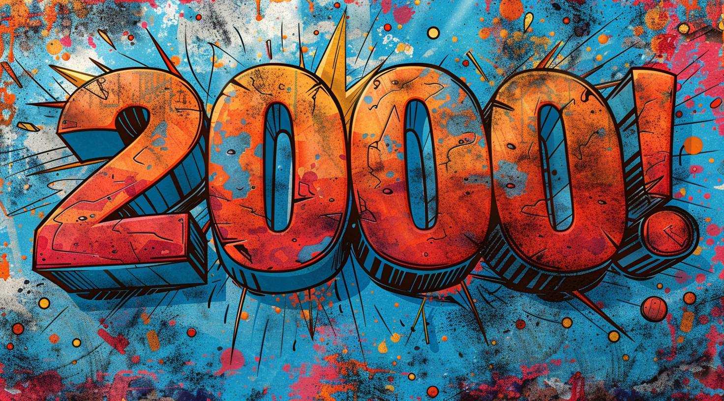 The word "20000!" written in the style of comic book with colorful speech bubble and star burst on blue background vector illustration design. --ar 128:71 --stylize 750 --v 6.0
