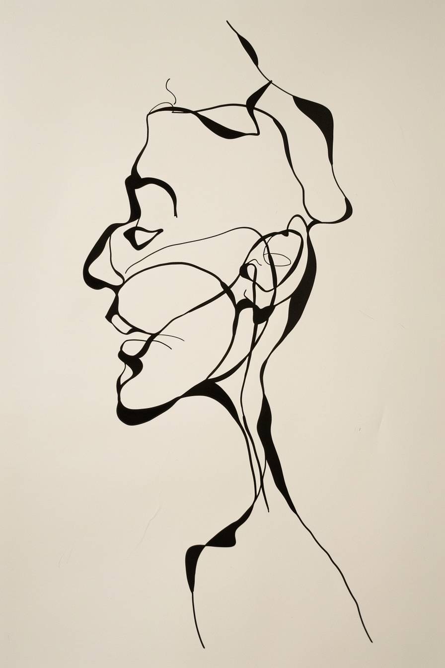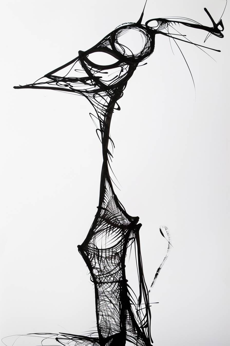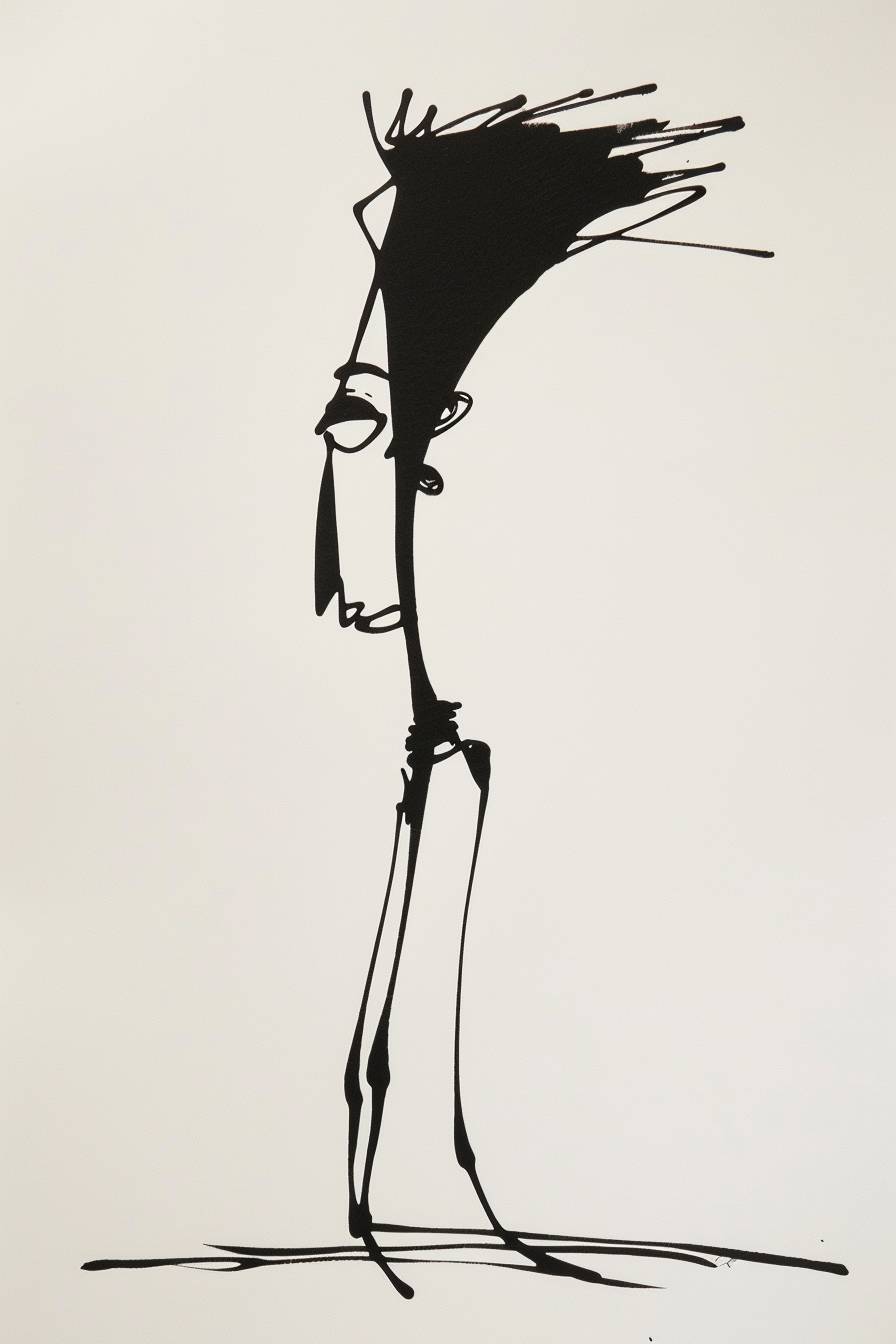 Персонаж в стиле Александра Кальдера, чернильное искусство, боковой вид