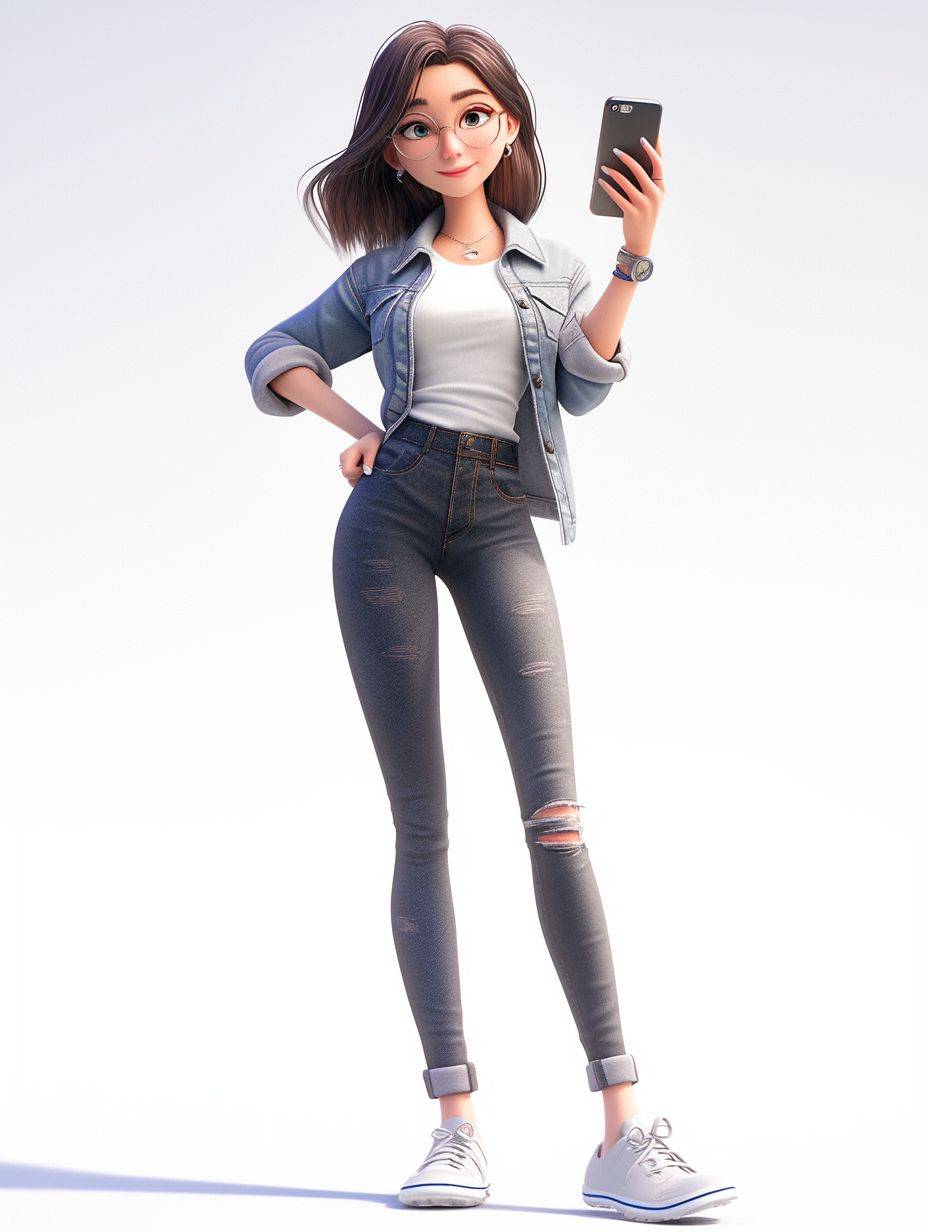 Full body, Lily is a 26 year old Asian art teacher who takes photos with her phone. Happy, blind box toy, white background, clay, blind toy, image wave, octane render, Maxon Cinema 4D, high detail , hyper quality, 8K Resolution, 3D --ar 3:4 --niji 6