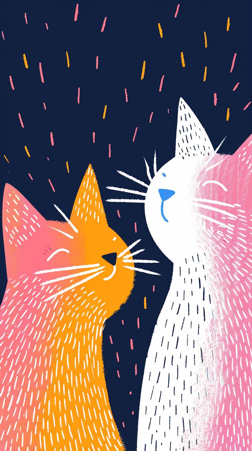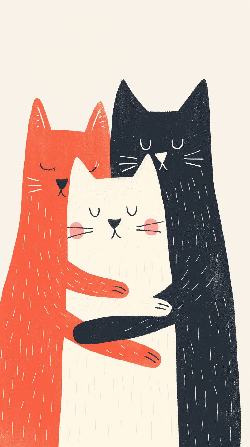 Rorschach test Replacementcraft cat Group hug poster vector illustration, in the style of ghostly forms, bright colors, bold shapes, animated gifs, abstract minimalism appreciator, flickr --ar 14:25 --personalize pq824x4 --stylize 750 --v 6.0